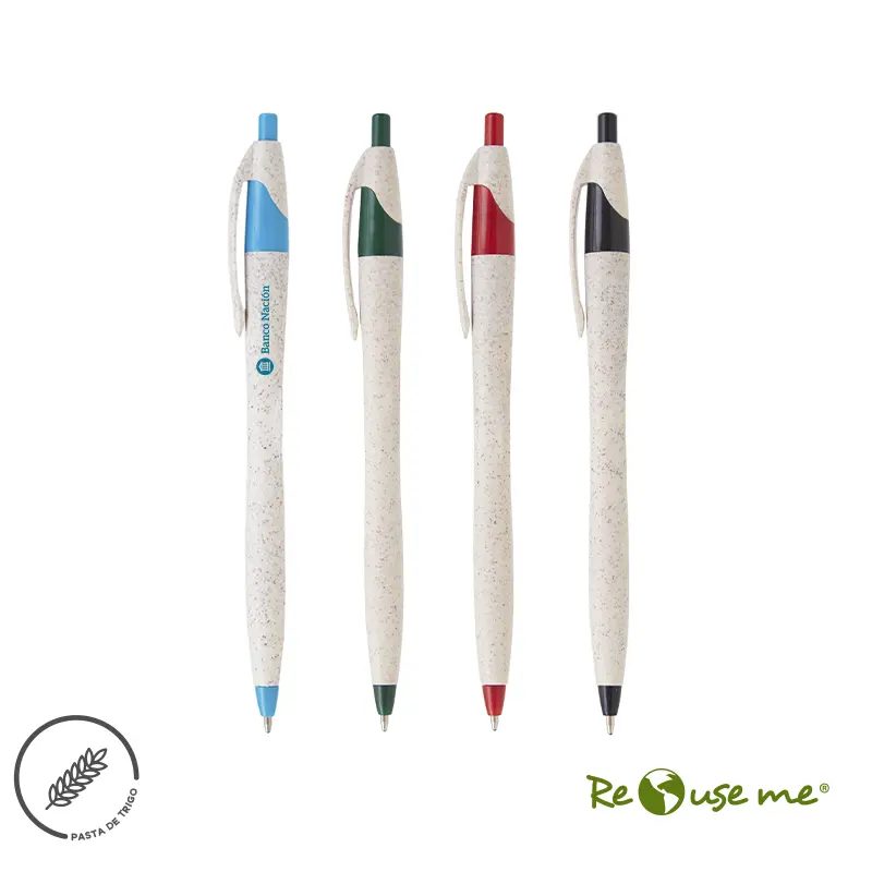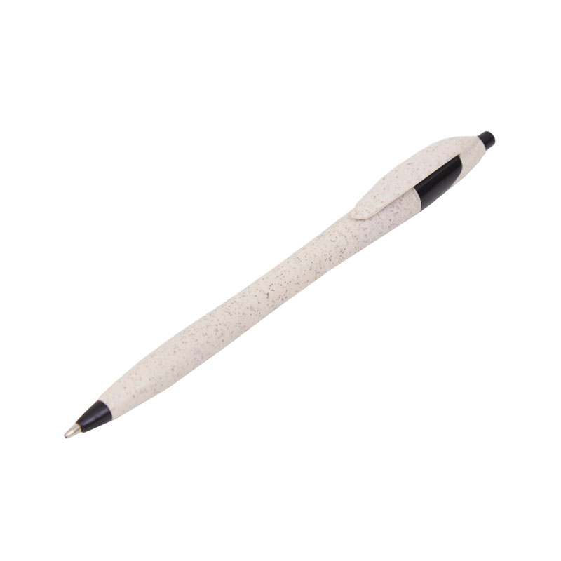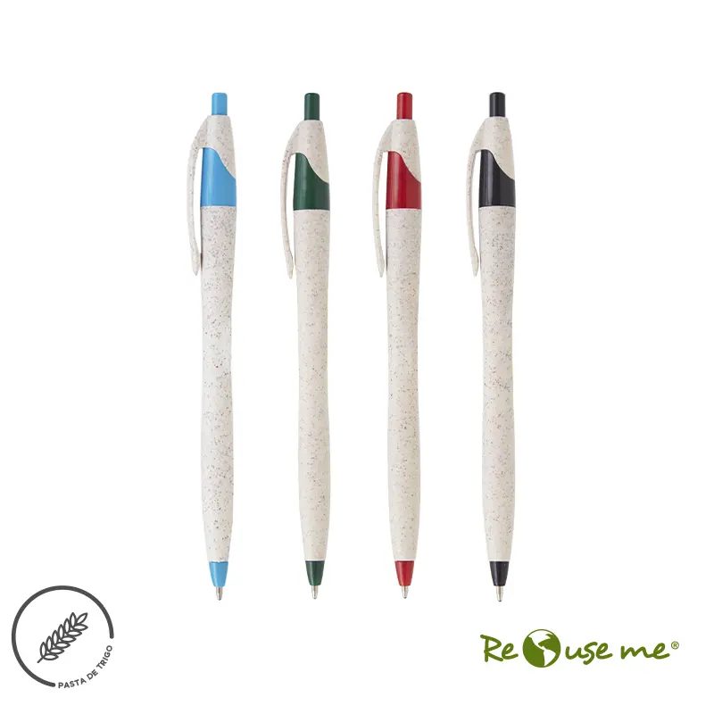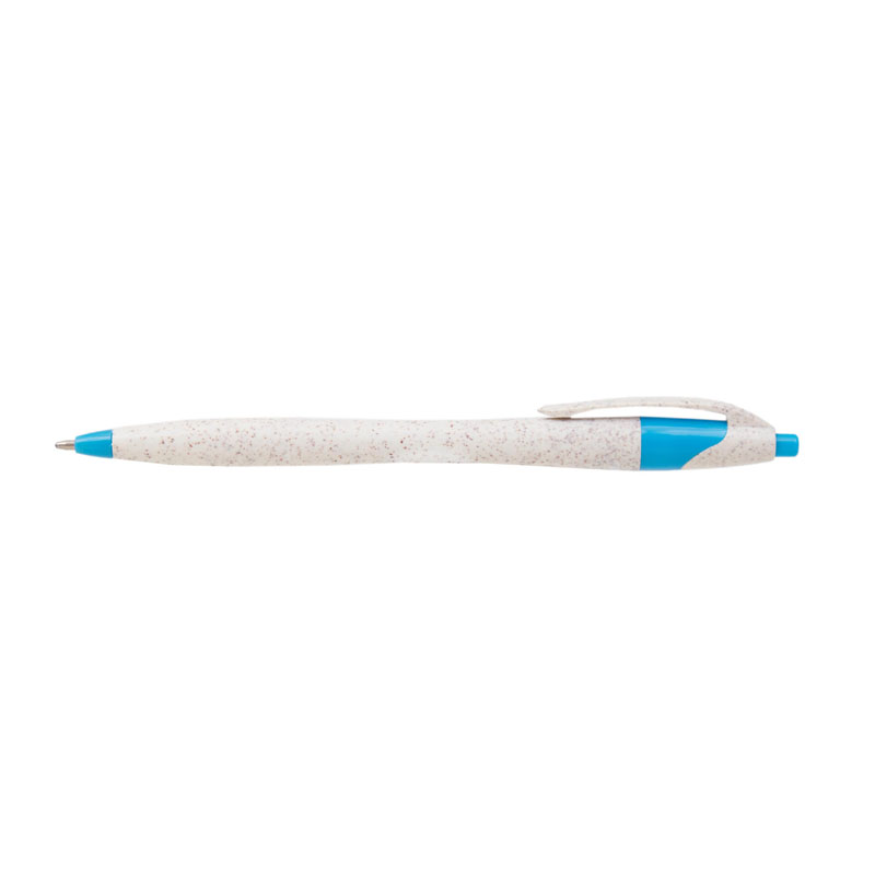 Bolígrafo confeccionado en ABS y Wheat Straw, pasta de tallo de trigo, un material sustentable que reduce el consumo de plásticos vírgenes. Tinta de color azul. Apertura con sistema retráctil.