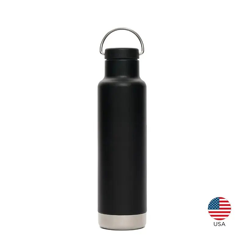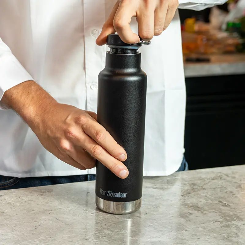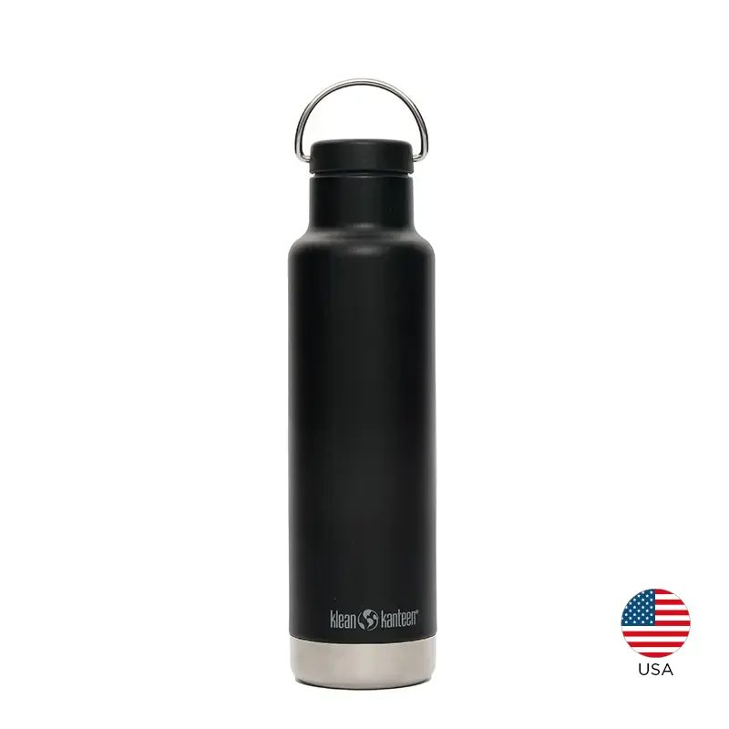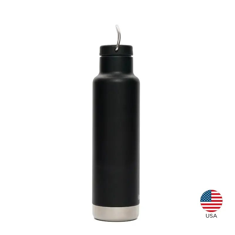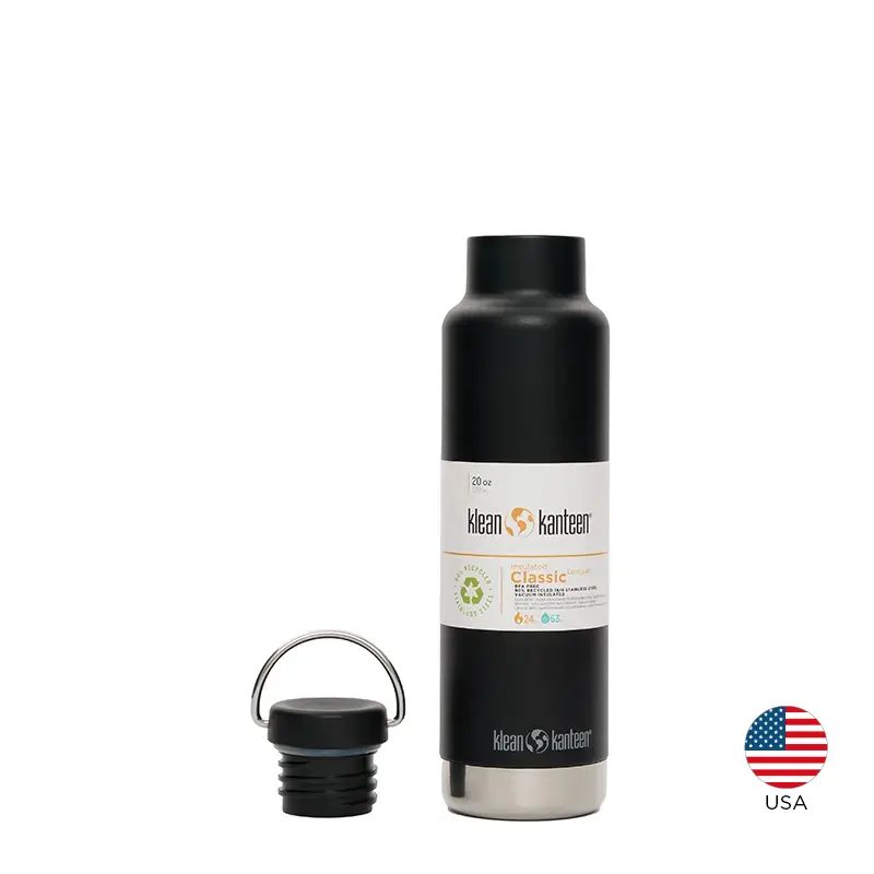 Botella térmica de 592 ml fabricada en doble pared de acero inoxidable, manteniendo las bebidas calientes durante 24 horas y frías durante 63 horas. Exterior en polvo Klean Coat, resistente a las astillas, es duradero y seguro para las personas y el planeta.
