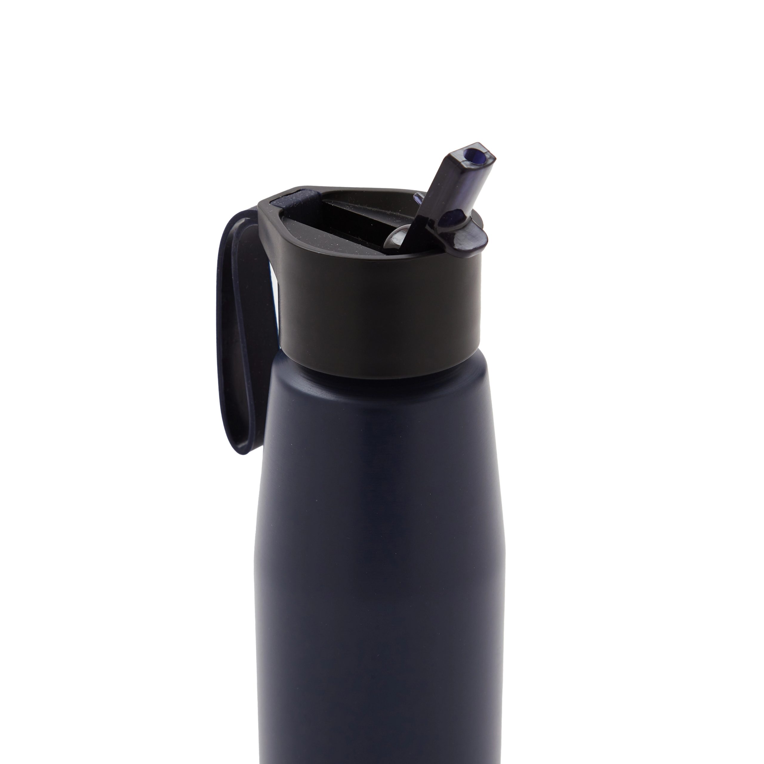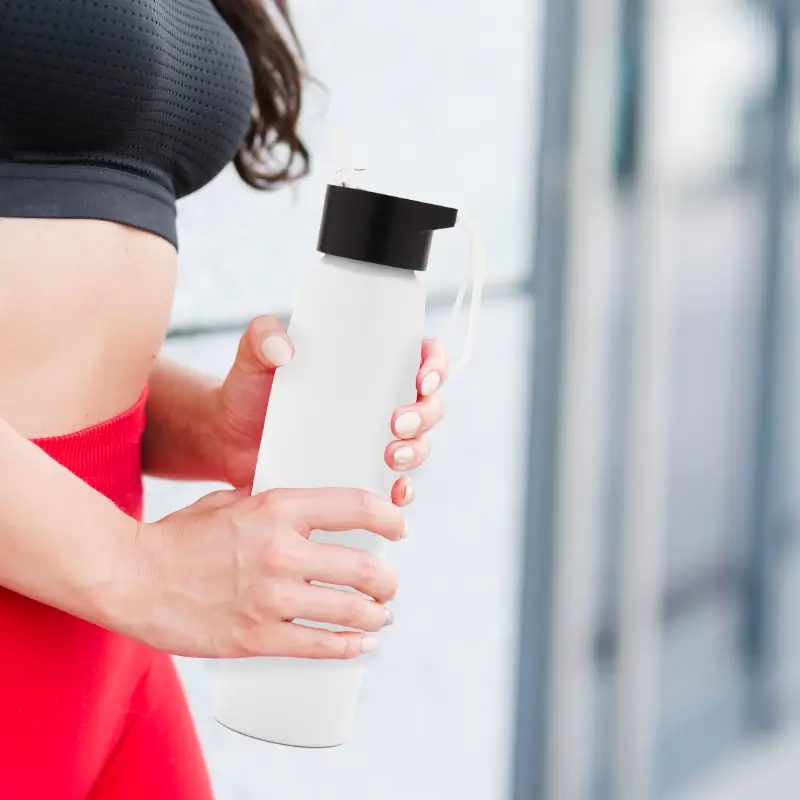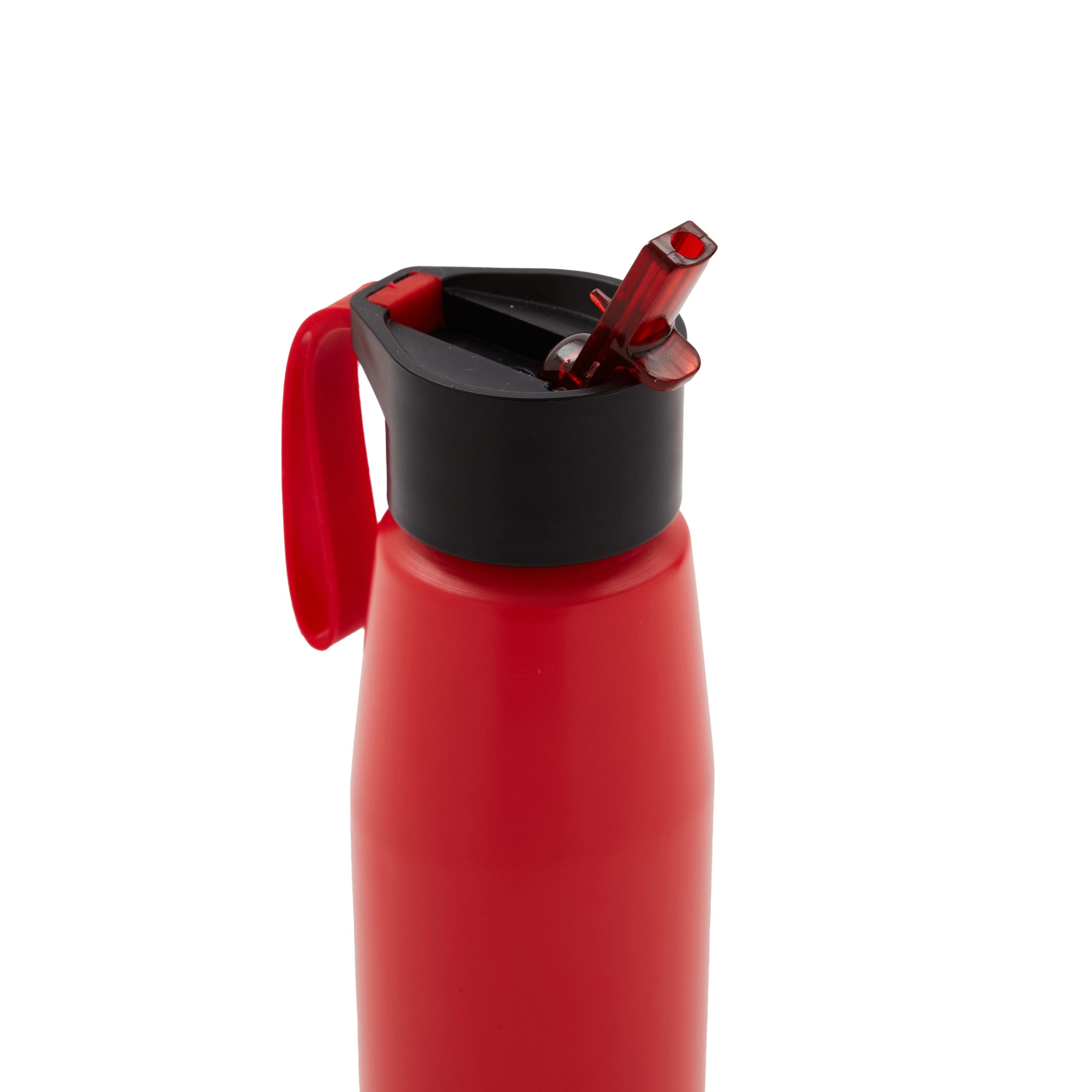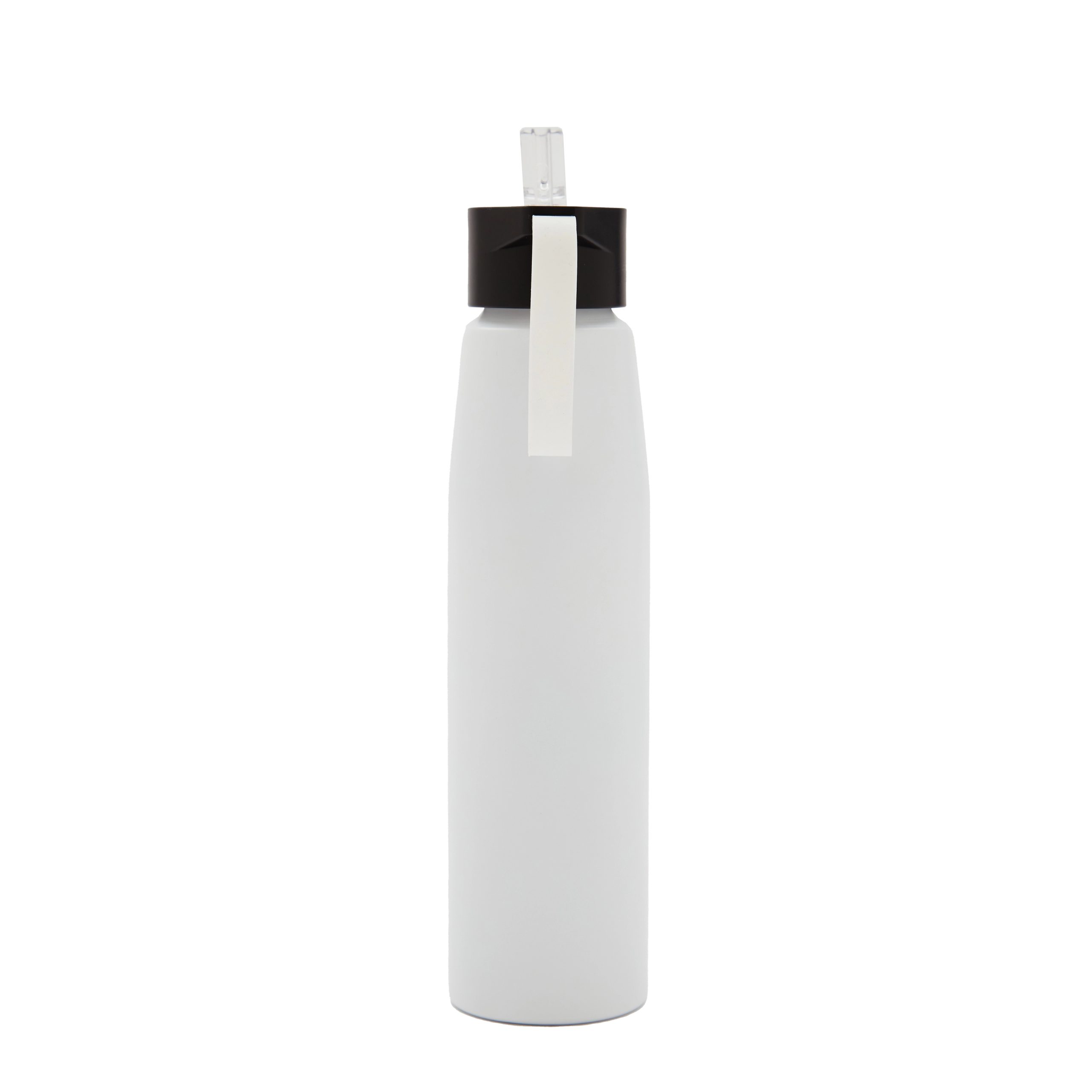 Botella de aluminio con tapa de PP negra a rosca con pico de PS y sorbete PE. Cuenta con una correa de silicona a tono con el color elegido para facilitar el agarre. Capacidad de 700 ml. Ideal para tus actividades deportivas y al aire libre. Con impacto positivo en el medio ambiente, esta botella reutilizable te ayuda a reducir el consumo de plástico de un solo uso. Producto libre de BPA. Tahg