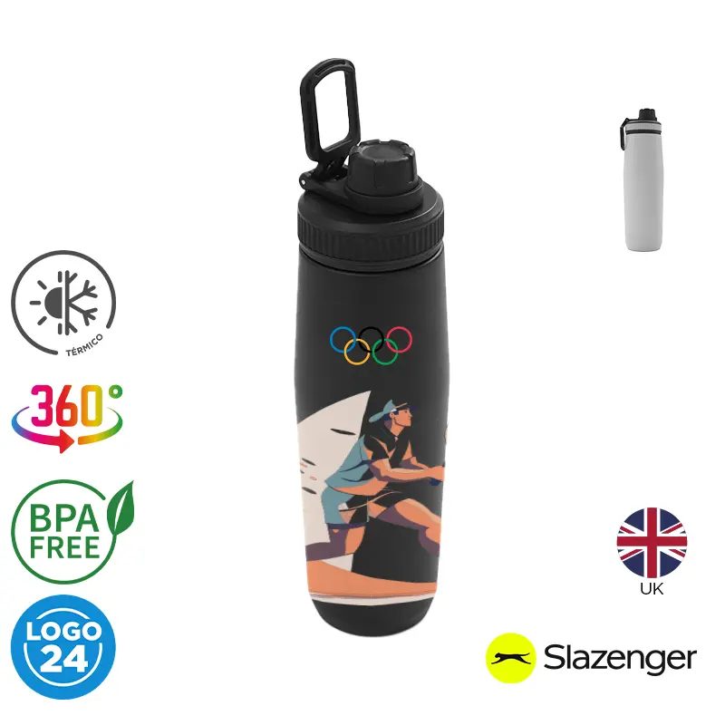 Botella deportiva reutilizable de 650 ml fabricada en acero inoxidable. Su doble pared aislante mantiene las bebidas frías por hasta 24 horas y calientes por hasta 12 horas, permitiéndote disfrutar tus bebidas favoritas en cualquier momento y lugar. Cuenta con tapa con pico a rosa, confeccionada en PP, y silicona para evitar derrames de líquido. Producto libre de BPA y aprobado por el I.N.A.L. para el contacto con alimentos. Ideal para tus actividades deportivas y al aire libre. Con impacto positivo en el medio ambiente, esta botella reutilizable te ayuda a reducir el consumo de plástico de un solo uso. Dimensiones: 26 cm x 7,8 cm (Altura x Diámetro).