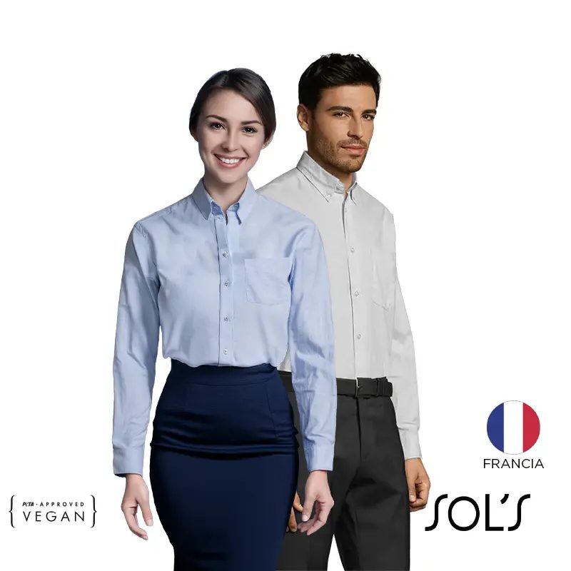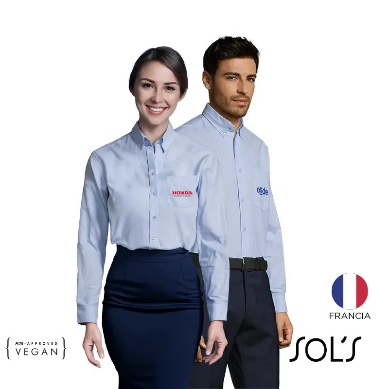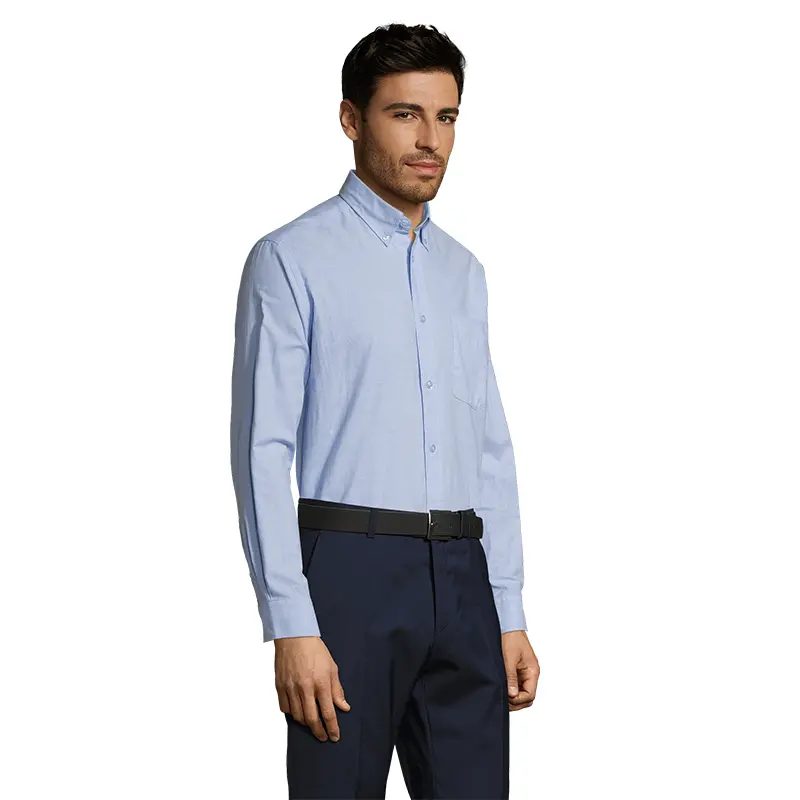 Camisa de manga larga de corte recto. Confeccionada en Oxford (70% algodón y 30% poliéster), ideal para uso profesional.