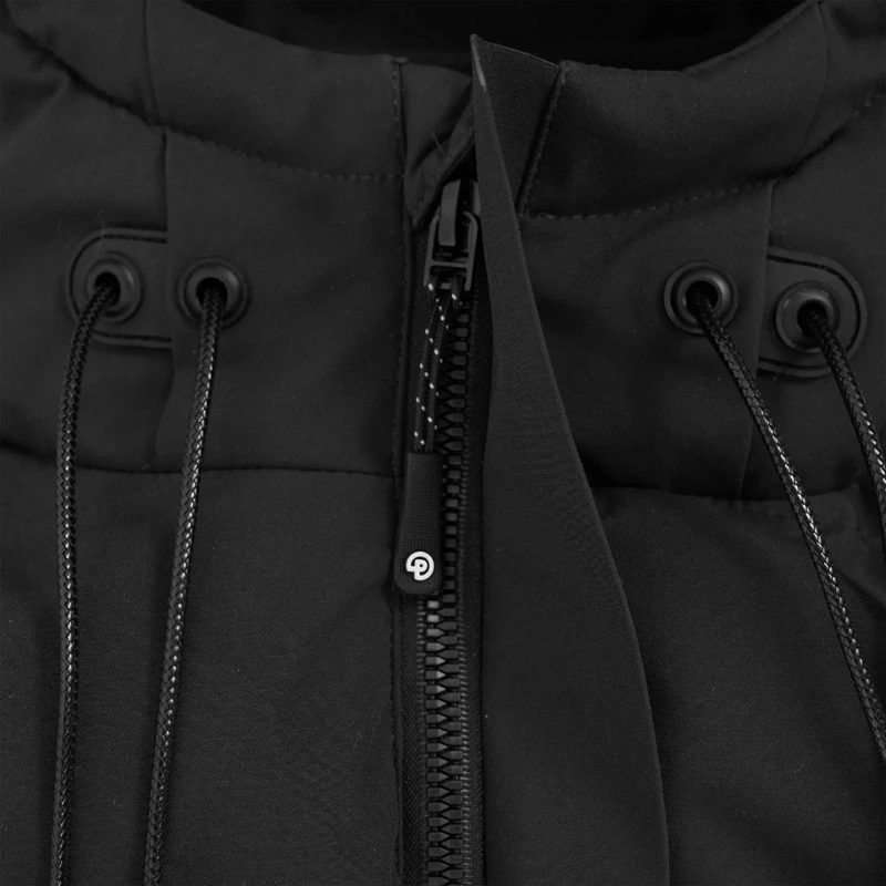 Cuenta con cierre completo, protector de cuello y capucha ajustable. El dobladillo elástico garantiza un ajuste cómodo y ceñido.