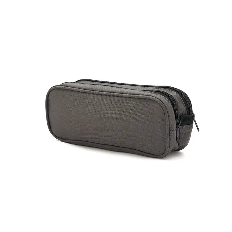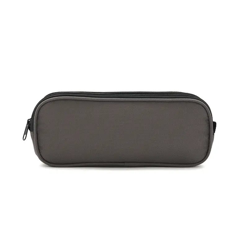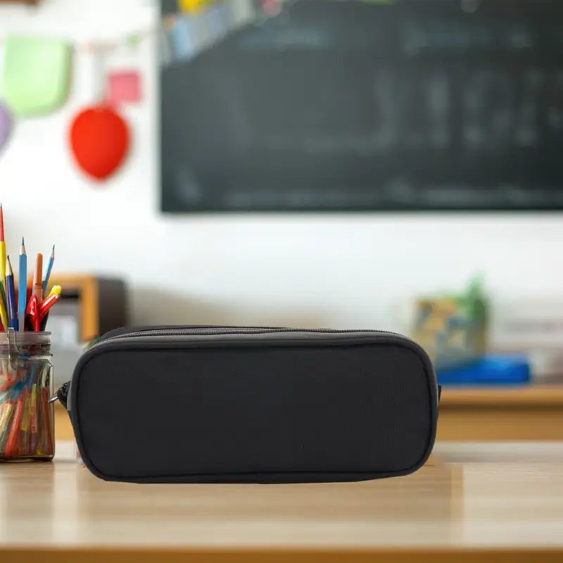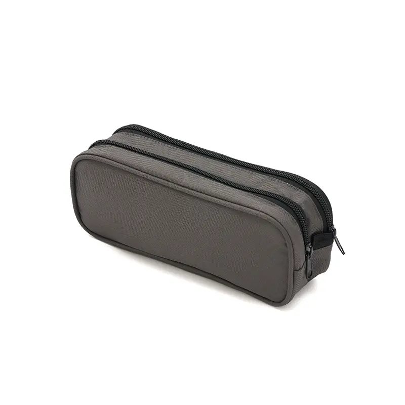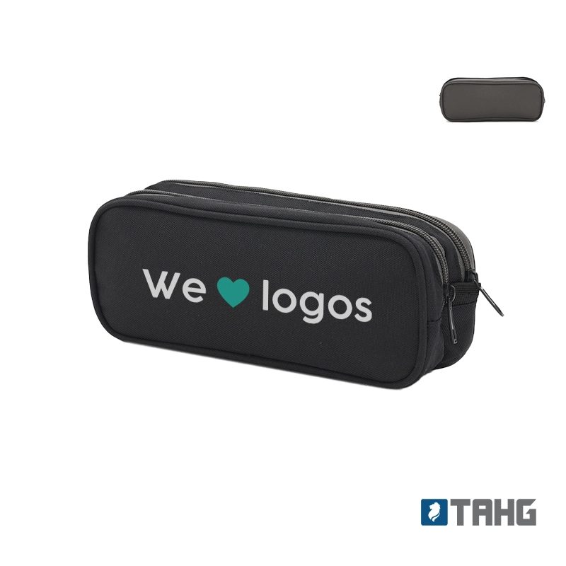 Cartuchera fabricada con un exterior de nylon gucci. Cuenta con dos compartimentos con cierres de colores contrastantes y un forro interior completo de 210D. Los colores disponibles son negro y gris. Medidas: 25 x 10 x 6 cm. Ideal para organizar útiles escolares o artículos personales, ofreciendo estilo y funcionalidad en un diseño compacto. El producto viene en una bolsa hecha de material 100% PLA, biodegradable y compostable. Tahg