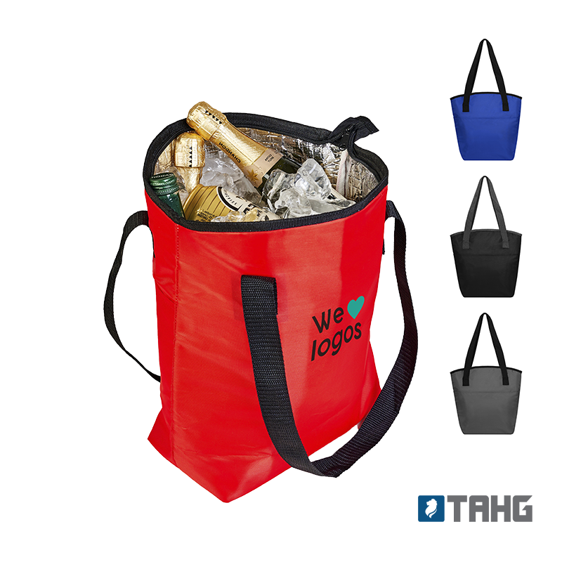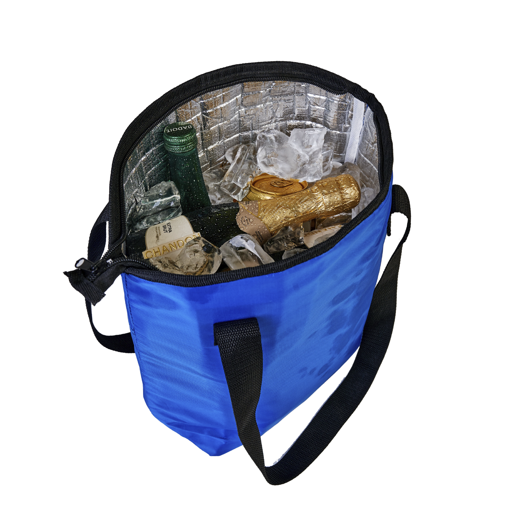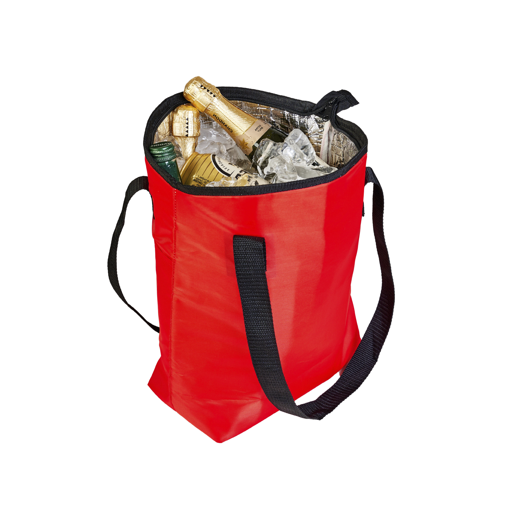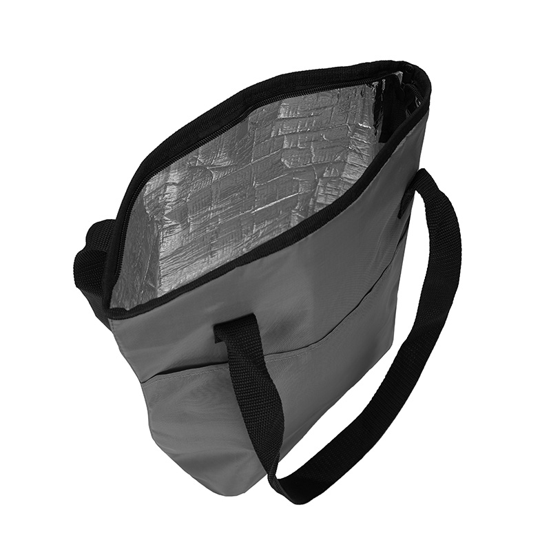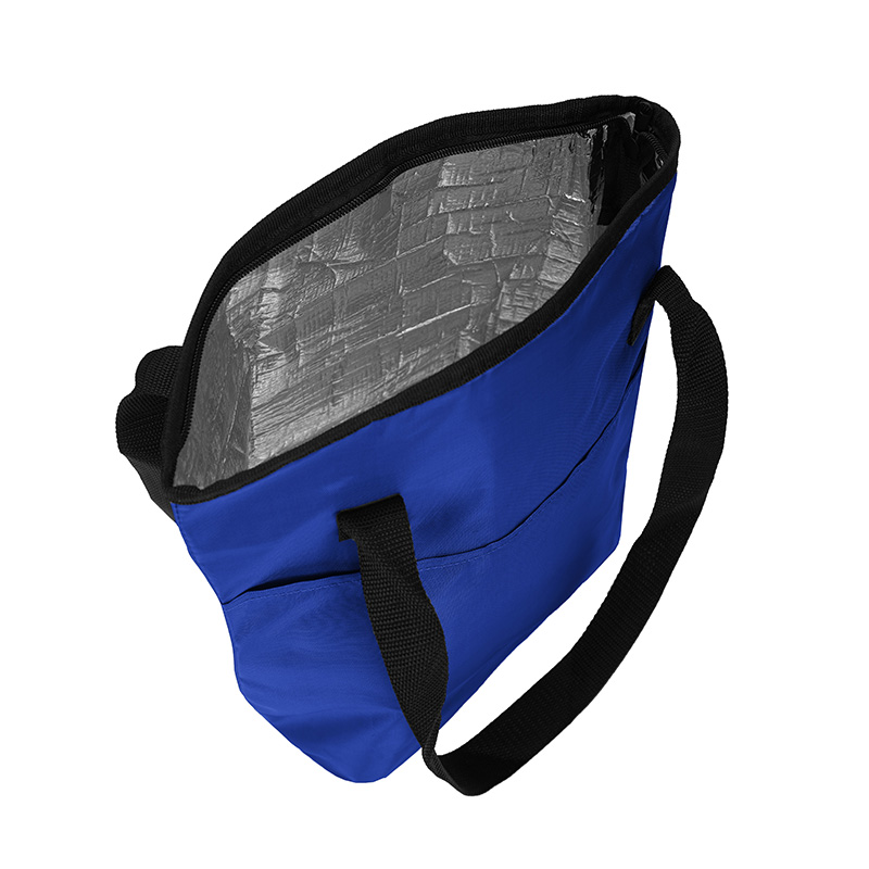 Cooler de Polyester 420D con compartimiento principal superior y bolsillo frontal. Posee interior en Aluminio y PE foam. Medidas: 37 x 24 x 13 cm. Capacidad: 11,5 Litros.