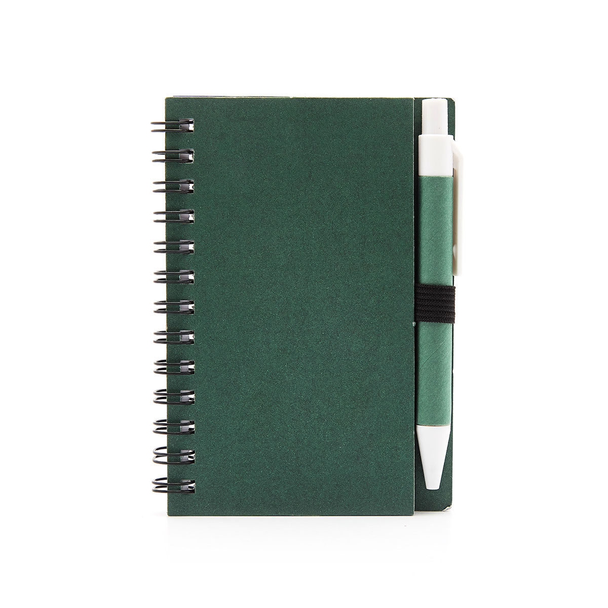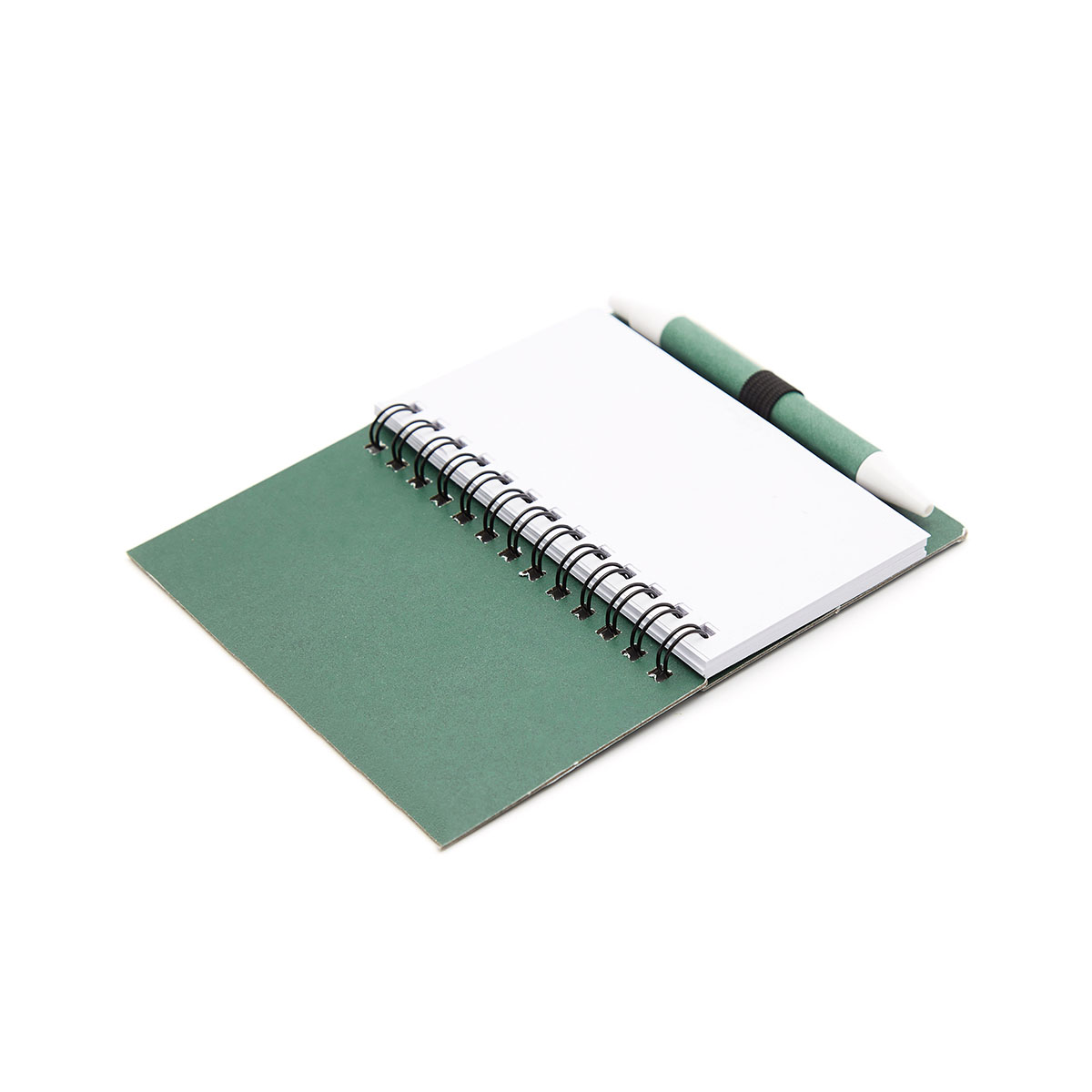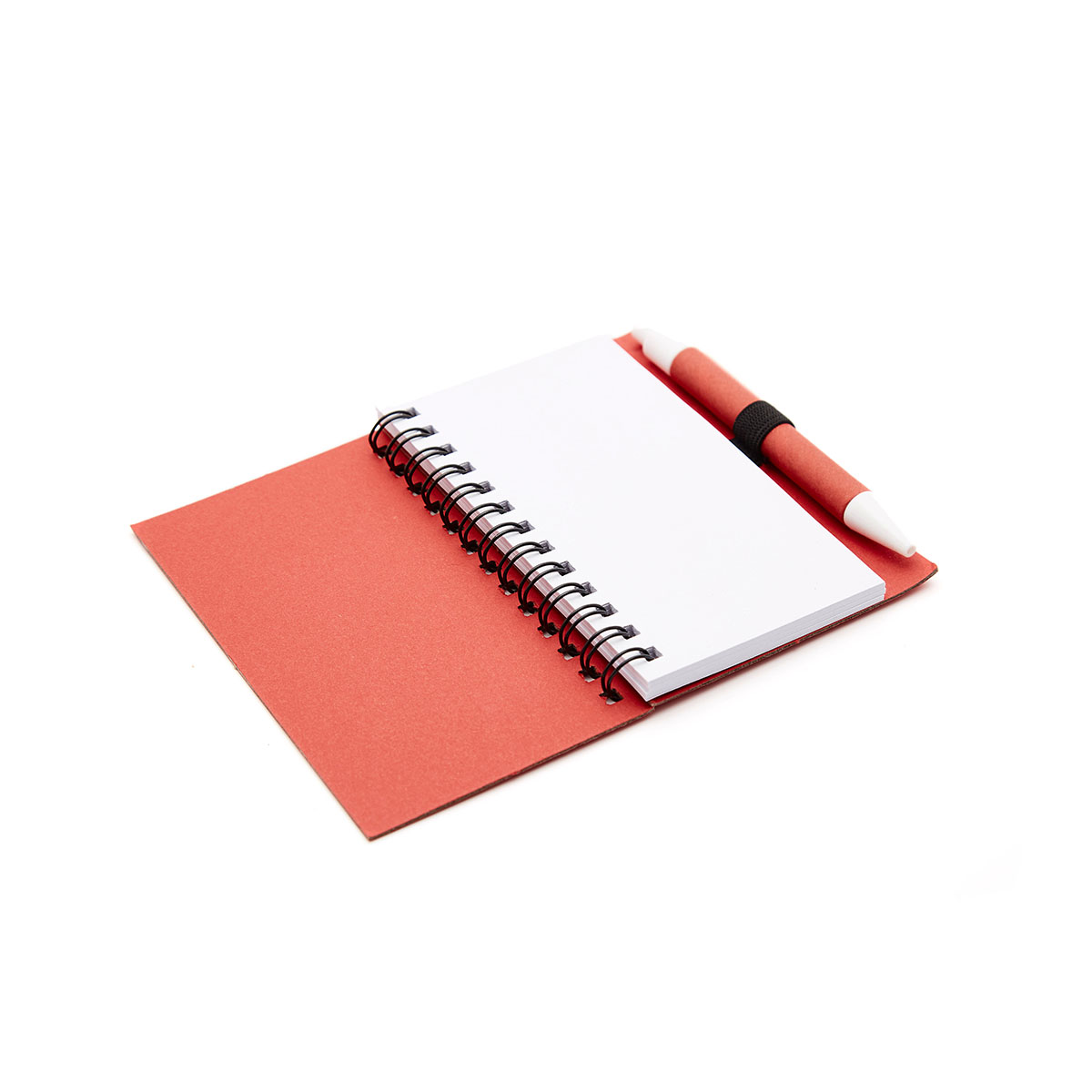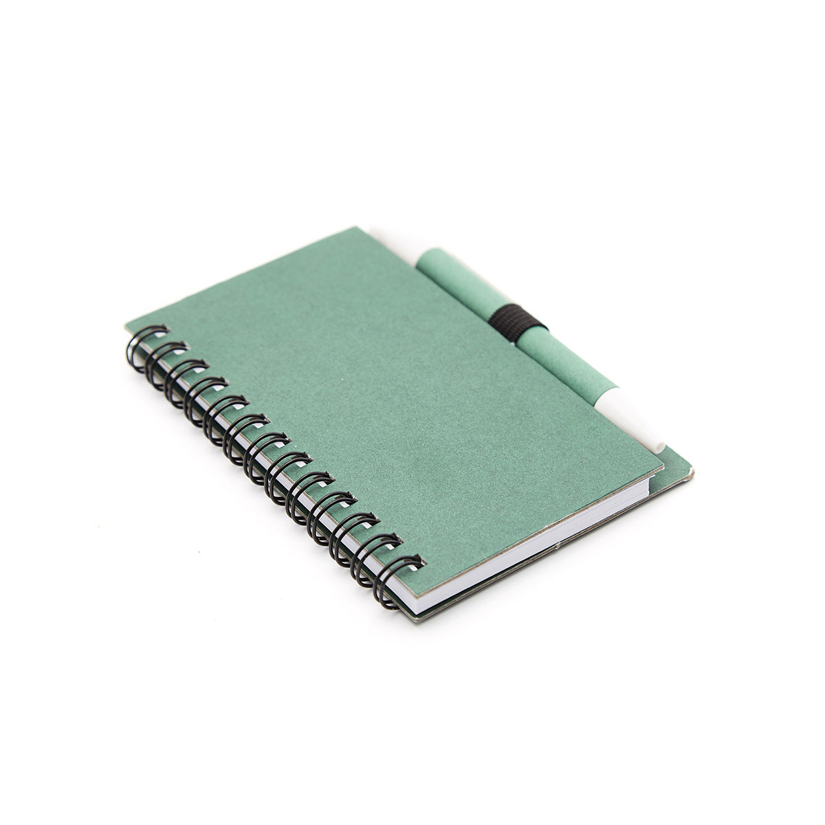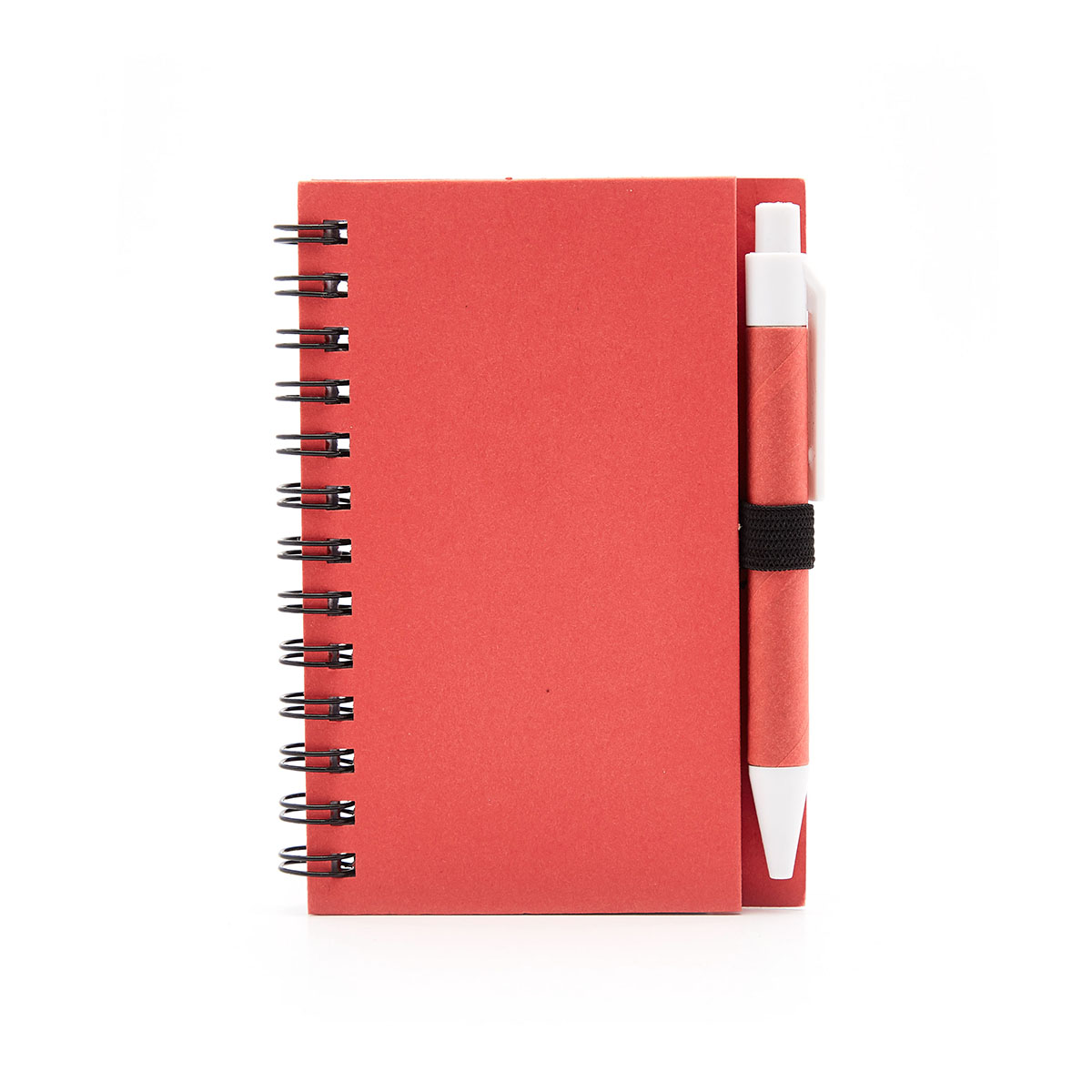 Cuaderno anillado colors tamaño A6 con 50 hojas lisas de 80 grm. Realizado con tapa dura elaborada en cartón reciclado. Incluye bolígrafo con pulsador. Medidas: 8 x 12 cm. ReUseMe.