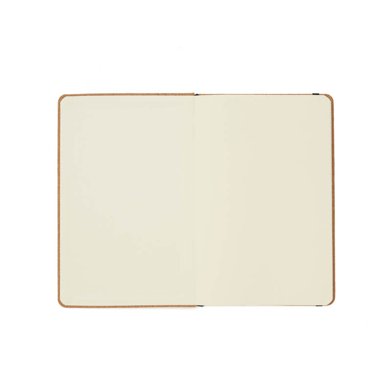 Cuaderno A5 de 80 hojas lisas de 70gr con tapa dura de papel kraft. Cuenta con cierre elástico y marcador de páginas color negro. Encuadernación cosida.