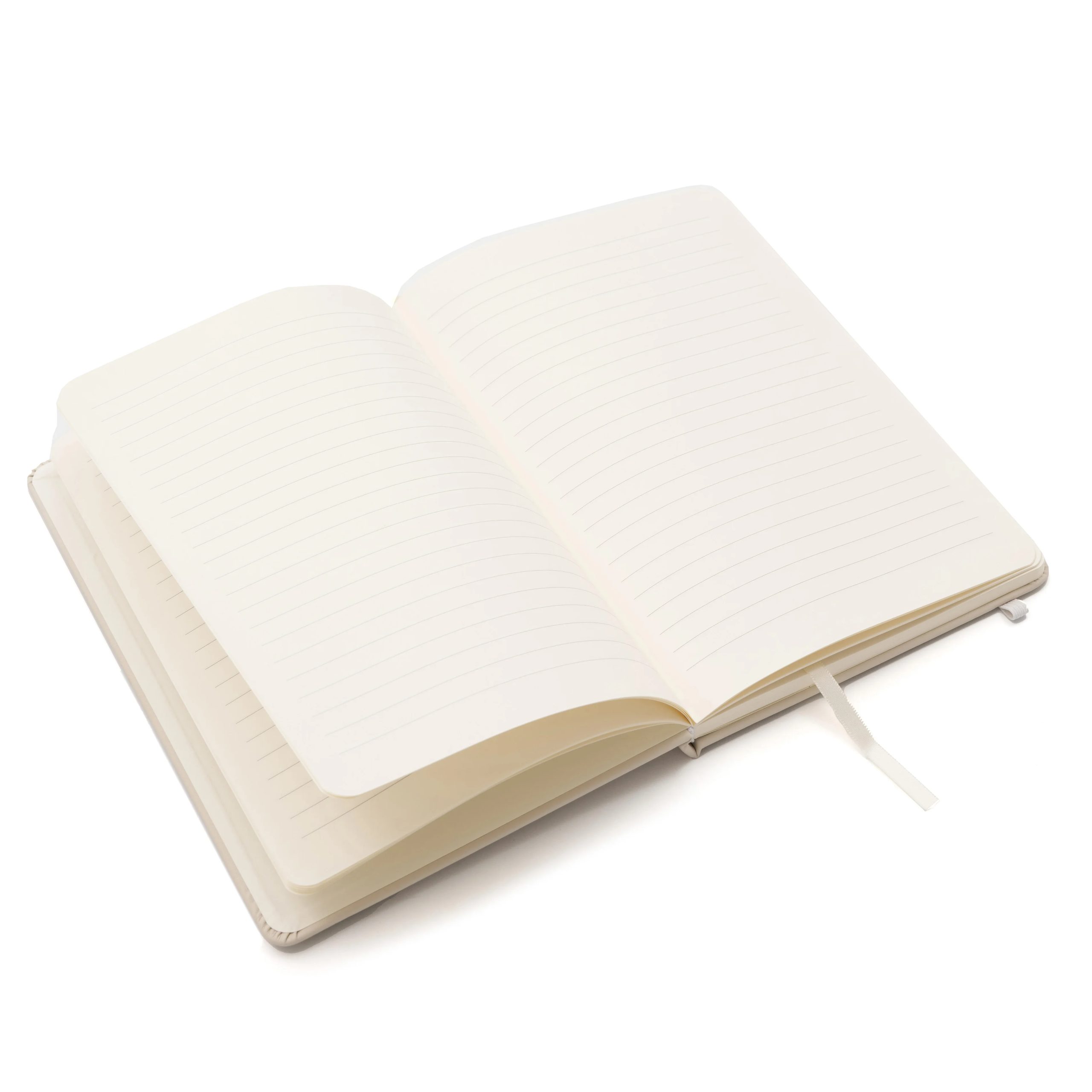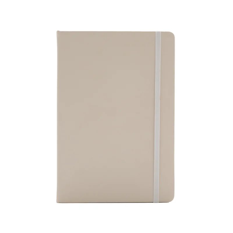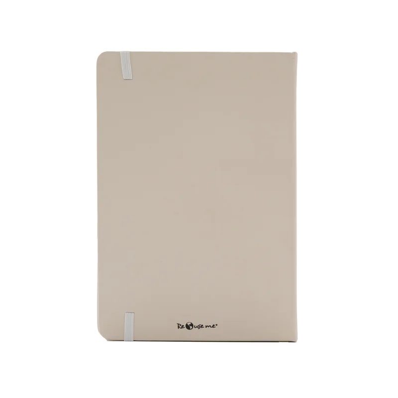 Cuaderno ecológico A5 con tapa bio-based y papel reciclado. Está fabricado con 56% de fibra de maíz y cubierta de PU bio-based. Cuenta con 80 hojas de papel reciclado FSC de 80 g/m², cierre elástico de 6 mm para mantener tus notas seguras, cinta señaladora y hojas rayadas color marfil para una escritura cómoda y ordenada. Es ideal para tomar notas en reuniones, apuntes de estudio o cualquier uso que requiera un cuaderno práctico, elegante y sostenible.