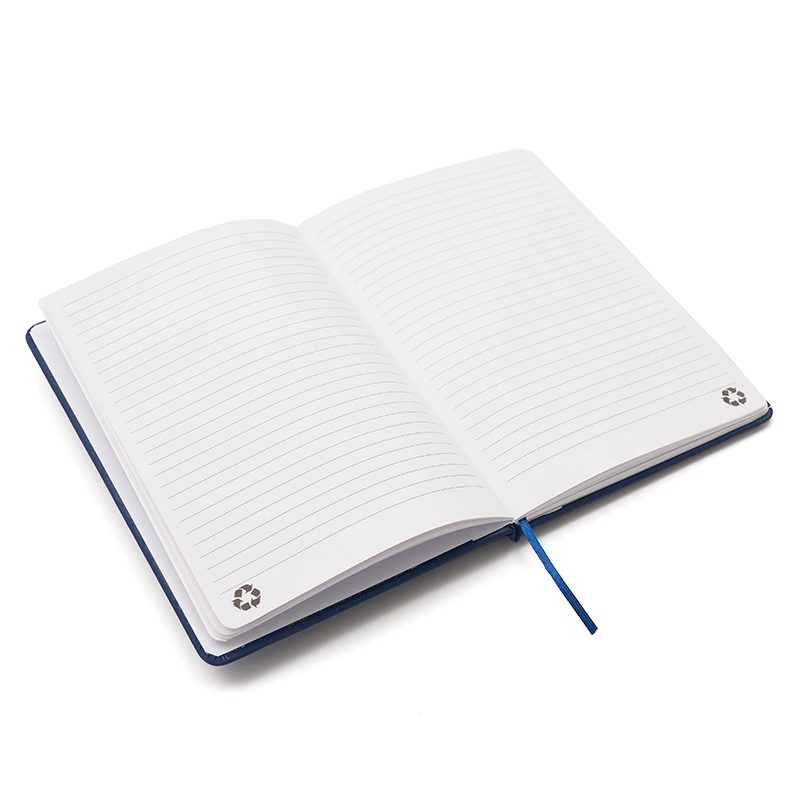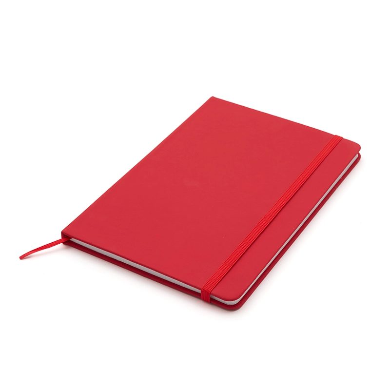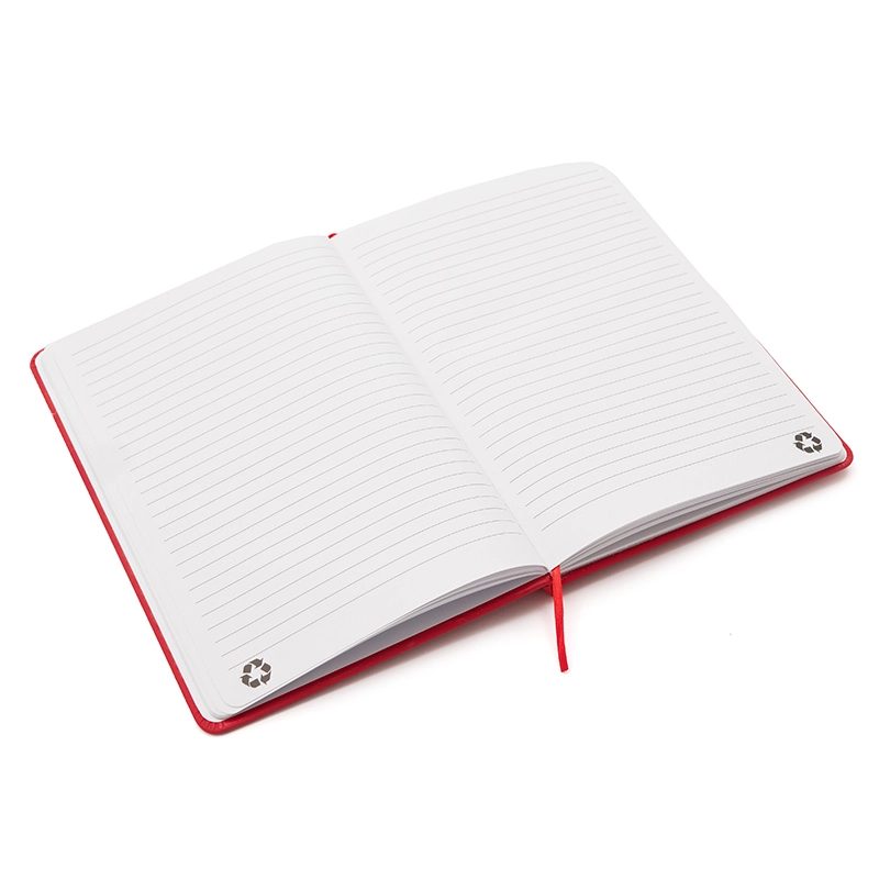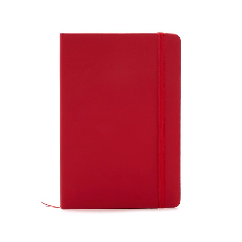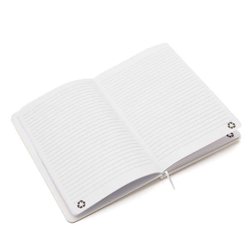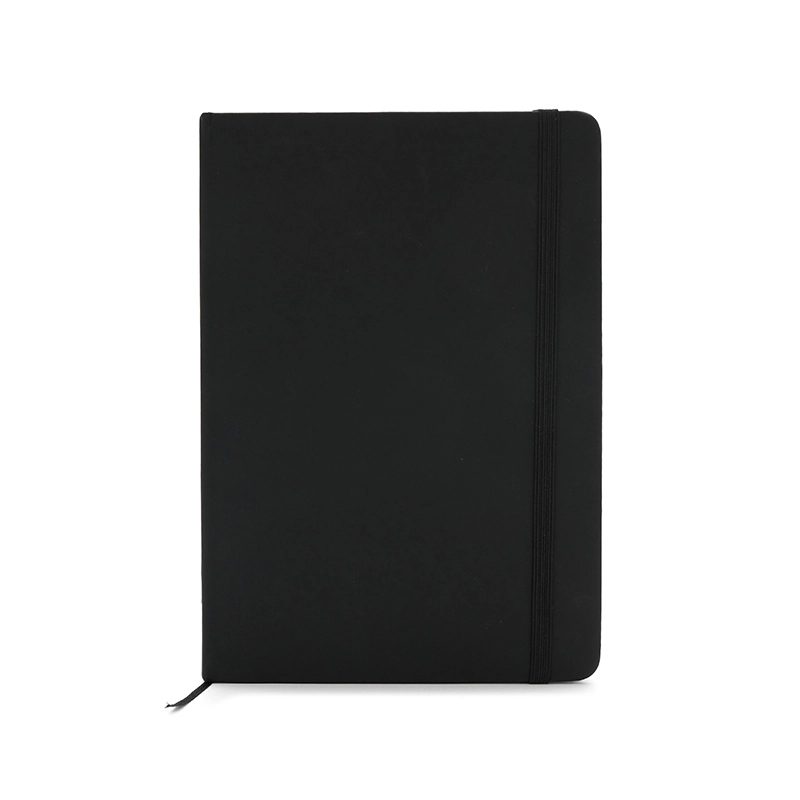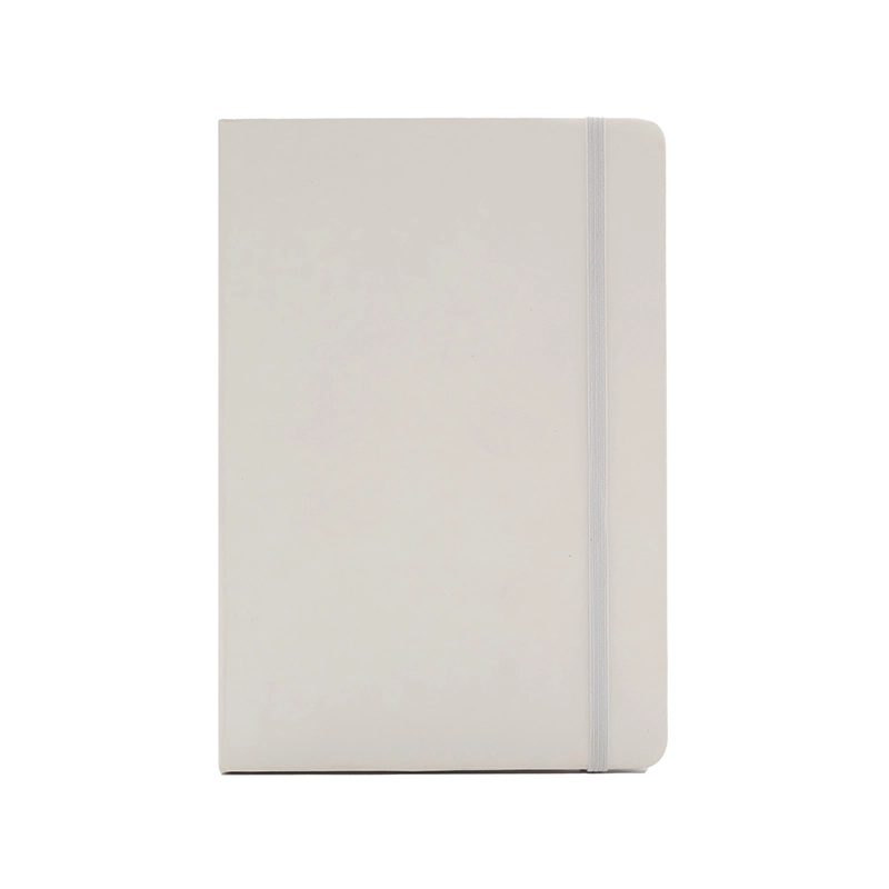 Cuaderno A5 de 64 hojas rayadas confeccionado en RPU. Cuenta con una cinta elástica adherida a la tapa para brindar un cierre seguro. Su peso es de 220 gramos, haciéndolo un producto cómodo de llevar. Ideal para llevar en tu día a día para dibujar o anotar tareas importantes.