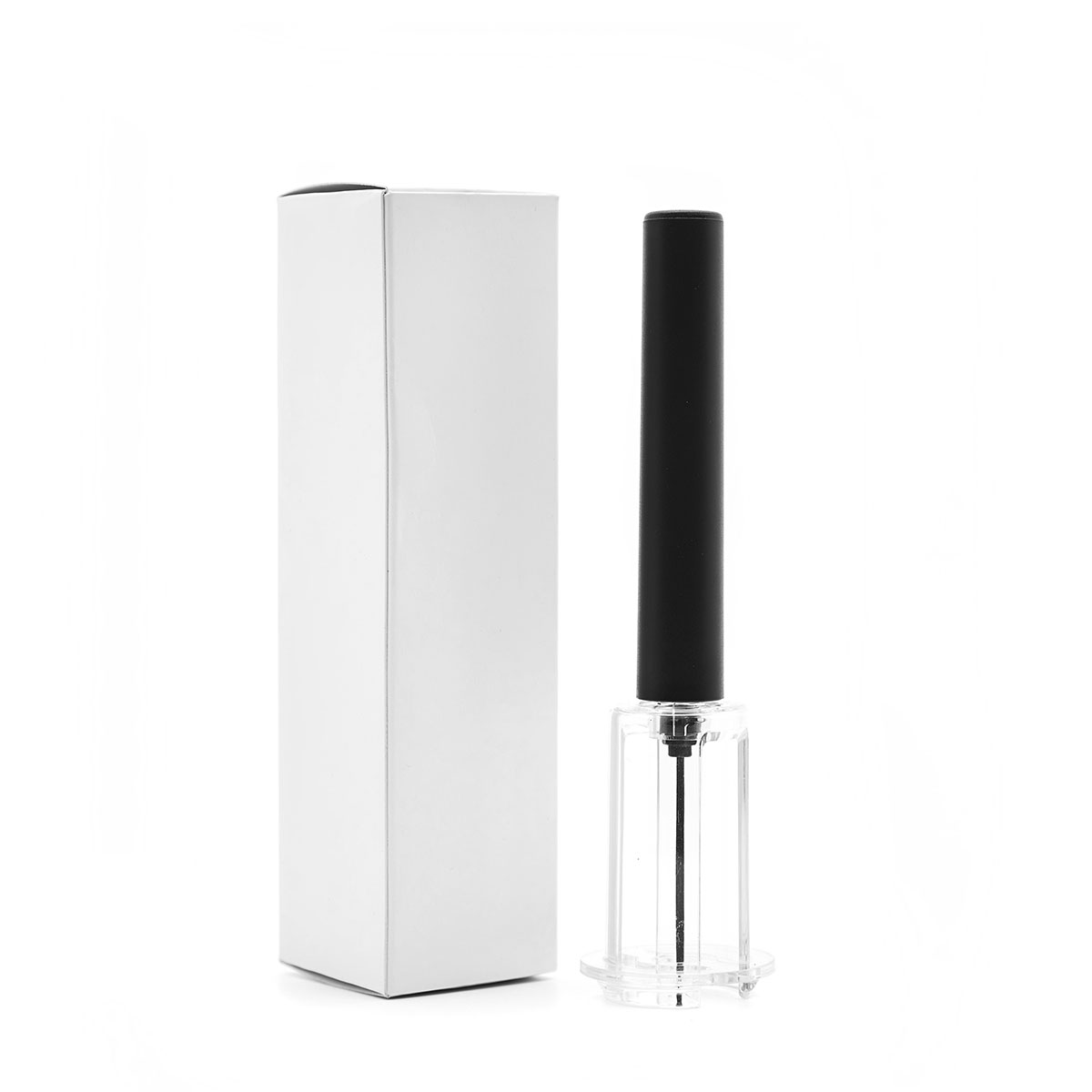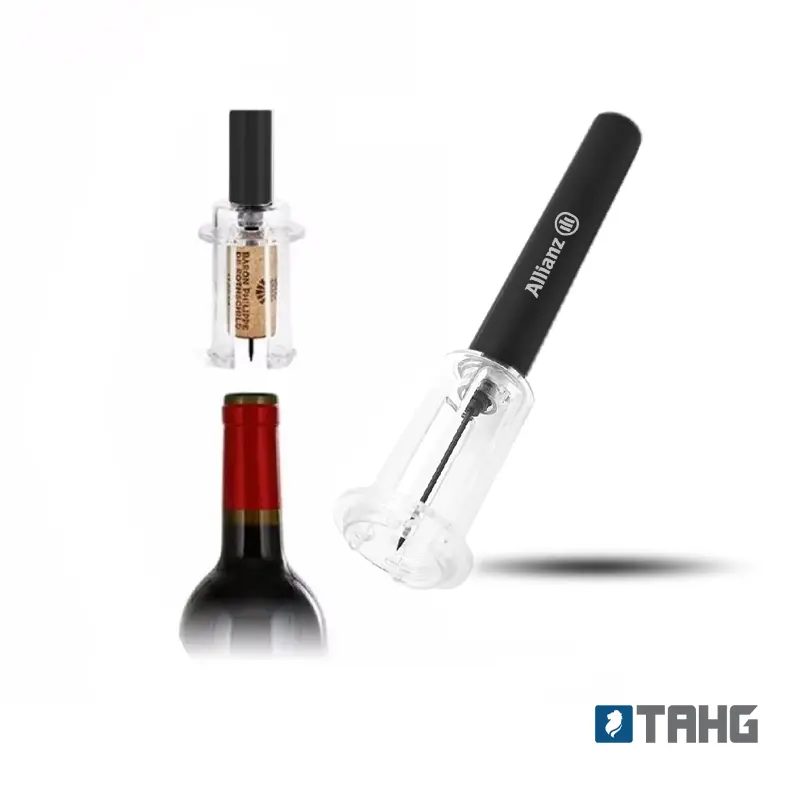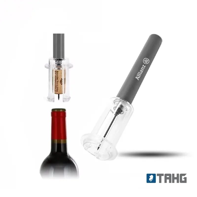 Sacacorchos neumático con caja contenedora. Se clava la aguja al corcho y se da presión al interior de la botella hasta que el corcho sale sin hacer fuerza. Medidas: Largo 19 cm. Tahg