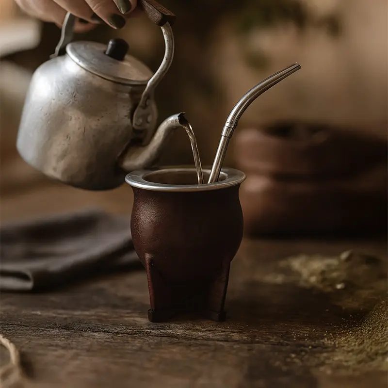 1. Llená el mate con yerba nueva hasta el borde del metal o el final de la calabaza.