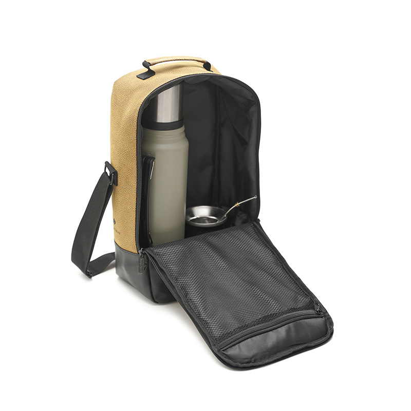 Bolso para equipo de mate Pampa Spirit con compartimiento principal acolchado y bolsillo de red interno. Base impermeable reforzada. Handgrip acolchado y correa regulable antideslizante. La foto es ilustrativa, no incluye termo ni mate. Medida: 21 x 39 x 10 cm. Capacidad: 10 Lts. Pampa Spirit