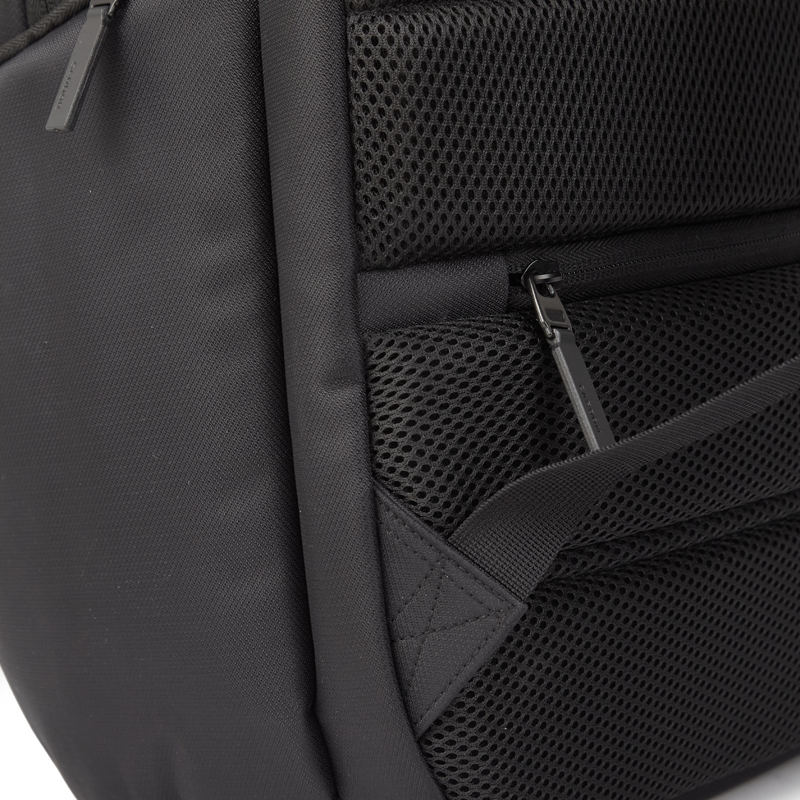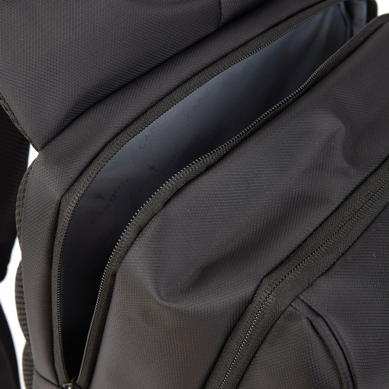 Mochila confeccionada en Nylon Jacquard con cierres en tono y cabezal metálico color negro. Cuenta con un compartimiento primario con tres bolsillos internos para guardar el celular, llaves o billetera y, un compartimiento secundario porta notebook. Posee también dos bolsillos laterales, uno frontal y, uno trasero (todos con cierre). Espalda y correas regulables acolchonadas. Esta mochila es ideal para llevar tu portátil al trabajo, de viaje o donde necesites para estar siempre online. Dimensiones: 47,5 x 31 x 16,5 cm (Alto x Longitud x Ancho). Capacidad: 24 lts. Cardon.