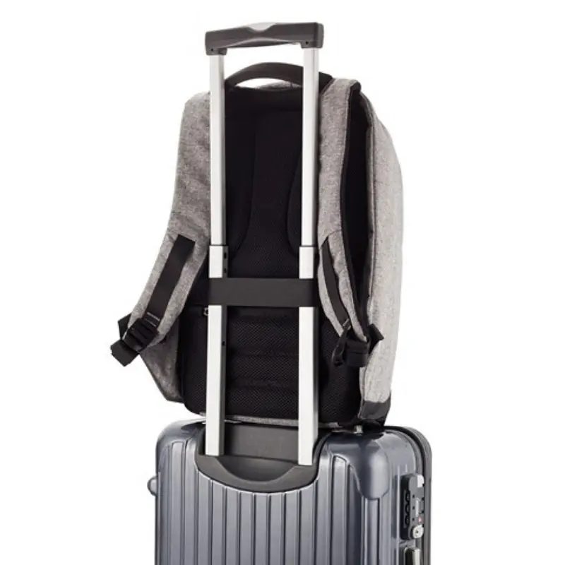 Mochila de Polyester Anti Robo con puerto USB. Compartimiento principal con gran capacidad Porta Tablet y Laptop. Bolsillo anti robo. Sujetador de carry on. Medidas: 44 x 32 x 15 cm. Capacidad: 21 Lts. Laptop: 15¨.