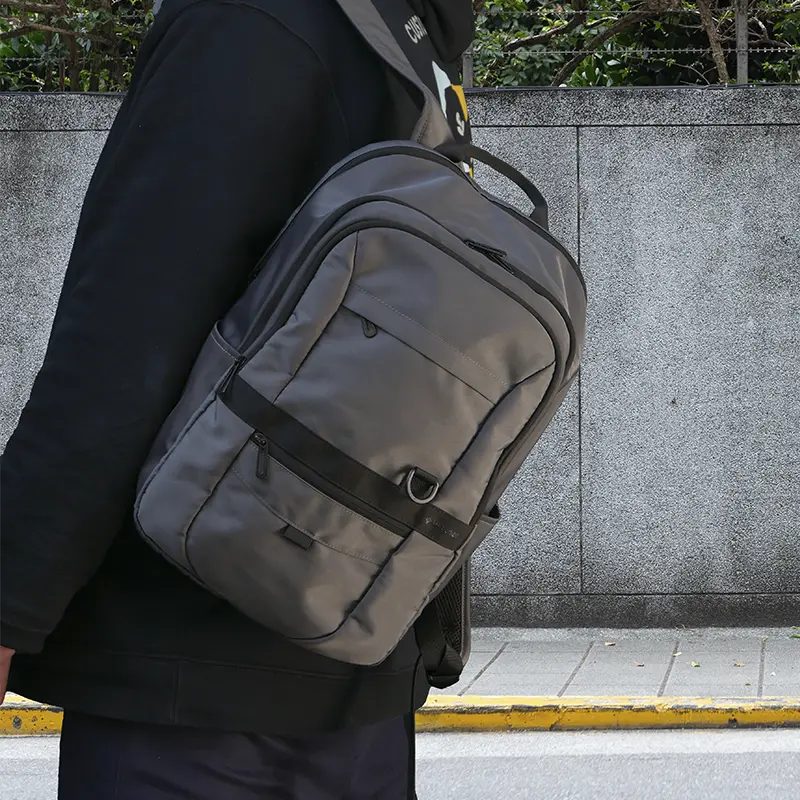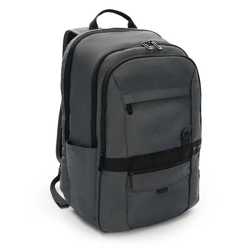 Mochila urbana con doble cierre y estructura reforzada. Está confeccionada en poliéster reciclado 420D, una opción sustentable y resistente para el uso diario. Cuenta con compartimiento principal amplio y un espacio para porta PC (15,6″), dos bolsillos frontales con cierre, y tiras ajustables acolchadas para mayor comodidad. En su interior cuenta con dos bolsillos pequeños sin cierre y dos para lapiceras. Es ideal para ir al trabajo, estudiar o moverse por la ciudad.
