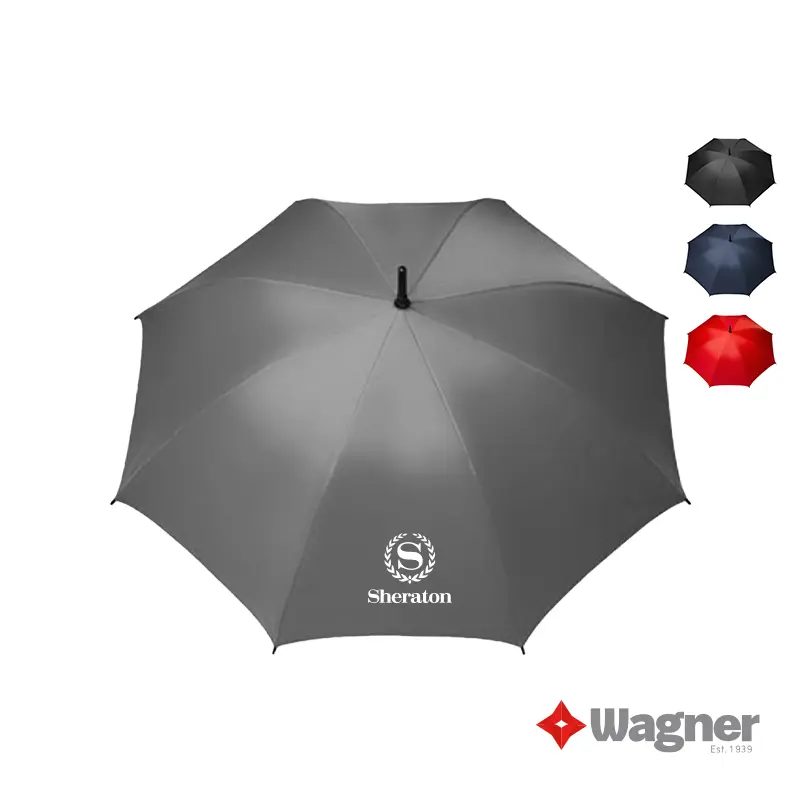 Confeccionado en Pongee 190T de alta resistencia, impermeabilidad. Marco de 8 varillas de apertura y cierre manual. Mango de goma de diseño anatómico. Medidas: Longitud 85 cm diámetro 115 cm. Wagner
