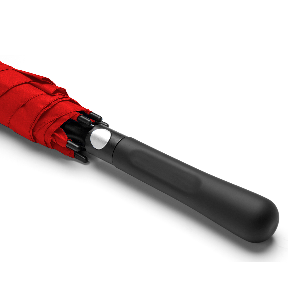 Realizado en Polyester 190T y Pongee, cuenta con sistema Wind Proof dual flex y costillas/ribs de nylon, otorgándole resistencia y flexibilidad. Posee mango plástico con rubber coating. Medidas: Largo 95…