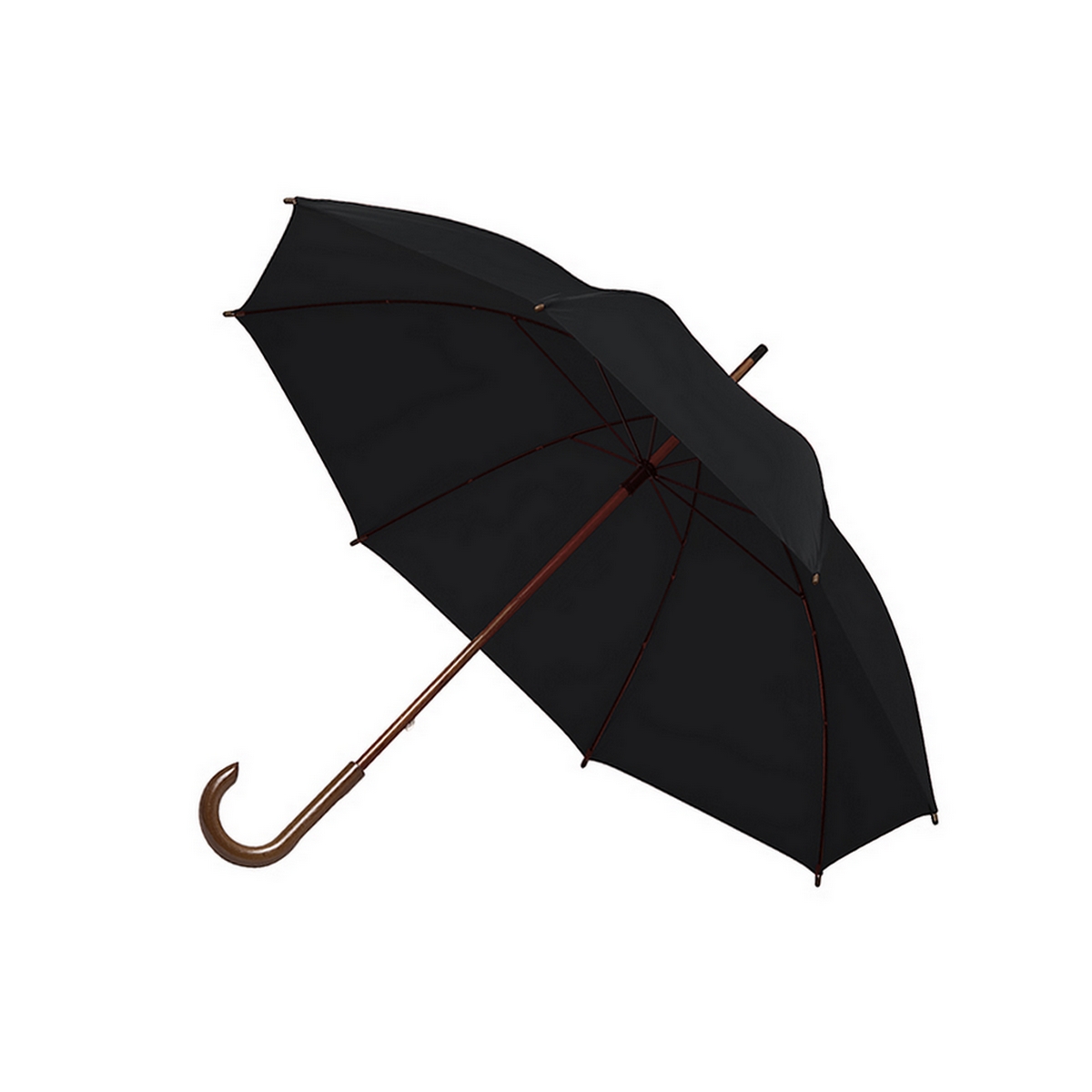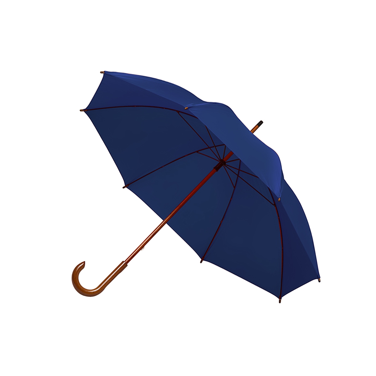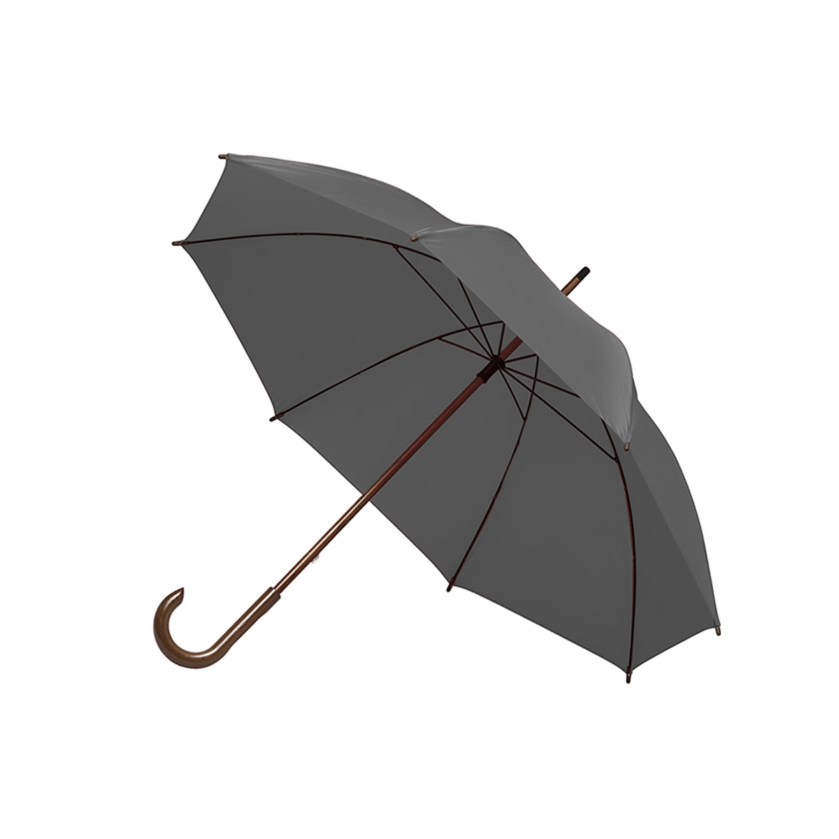Paraguas de 8 gajos con mango de madera curvo. Sector plano en el mango para personalizar. Elaborado en Polyester. Medidas: Largo 89 cm x diámetro 100 cm. Material: Polyester 190T….