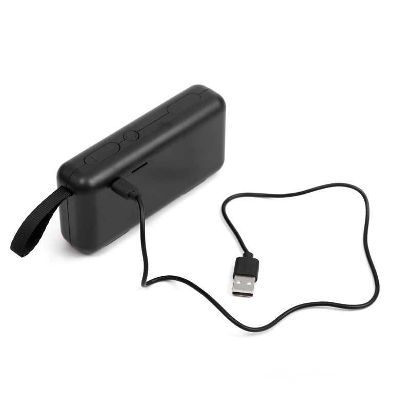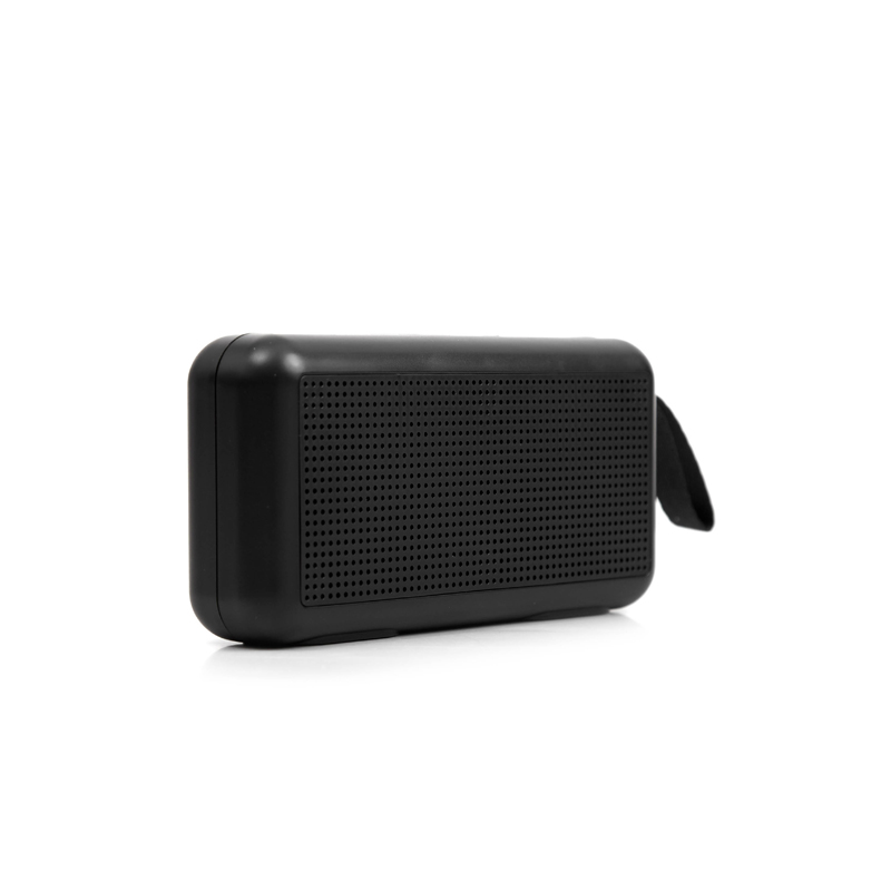 Parlante portátil con tecnología Bluetooth, micrófono manos libres y modo radio FM, realizado en ABS. Incluye ranura para lectura de tarjetas de memoria micro SD. | Batería de 500mAh | Potencia del parlante: 3W | Conexión5V/300mA | Peso: 160g | Medidas120 x 30 x 60mm | Tahg