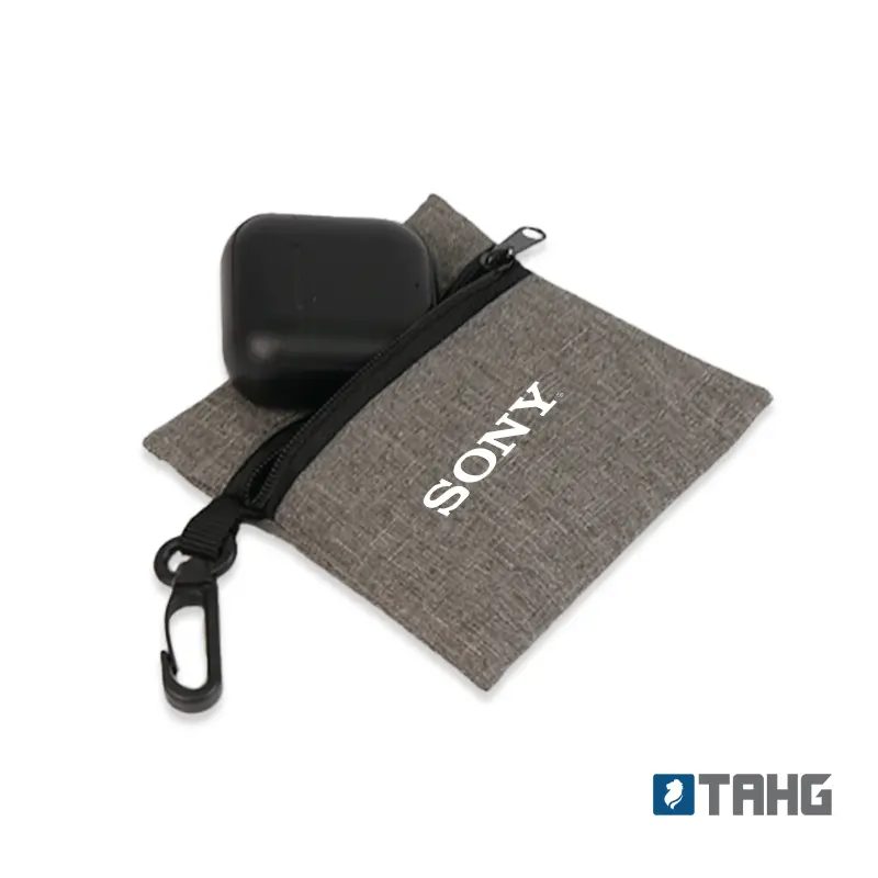 Porta objetos fabricado en poliéster 300D bicolor. Cuenta con cierre y gancho plástico. Es ideal para llevar pequeños accesorios o efectivo. Tahg. Imagen Ilustrativa, no incluye elementos adicionales.