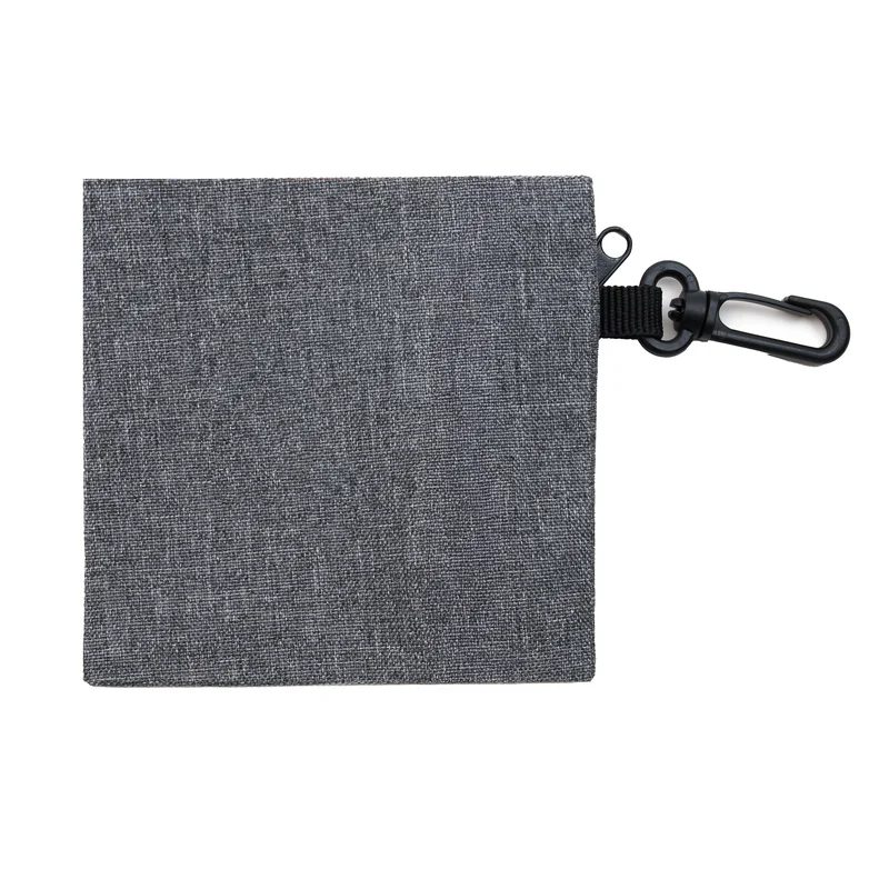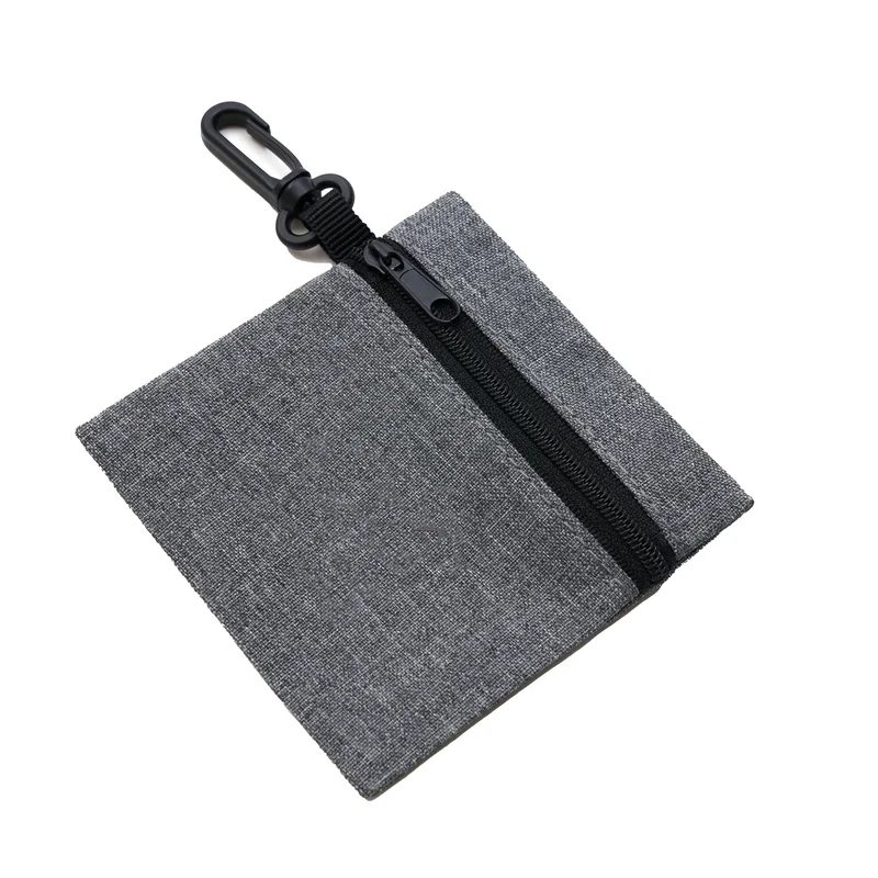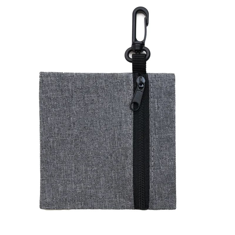 Porta objetos fabricado en poliéster 300D bicolor. Cuenta con cierre y gancho plástico. Es ideal para llevar pequeños accesorios o efectivo.