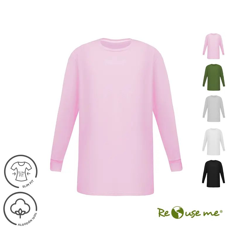 Remera de manga larga unisex en corte slim fit, con cuello redondo y puño de ribb de algodón. Esta prenda está confeccionada 100% en algodón 24/1 peinado, un recurso ecológico renovable y sostenible. Ella mide 1.68m, pesa 60 kilos y está usando talle M. Él mide 1.88m y está usando talle L. Recomendaciones de uso para cuidar tu prenda: Lavar a máquina a 30°. No Blanquear. No secar en máquina. Planchar suavemente, evitando el área estampada. ReUseMe.