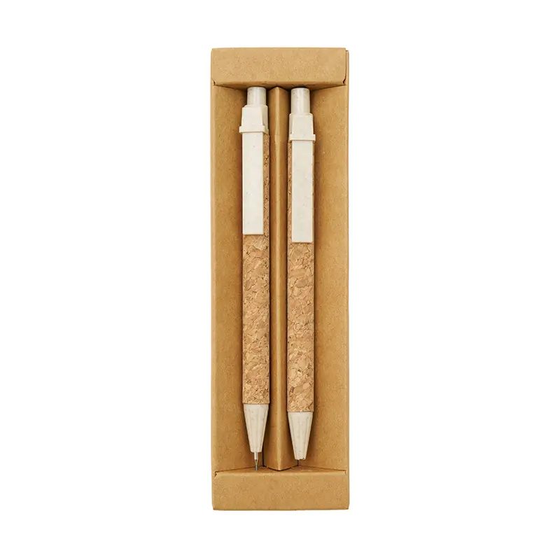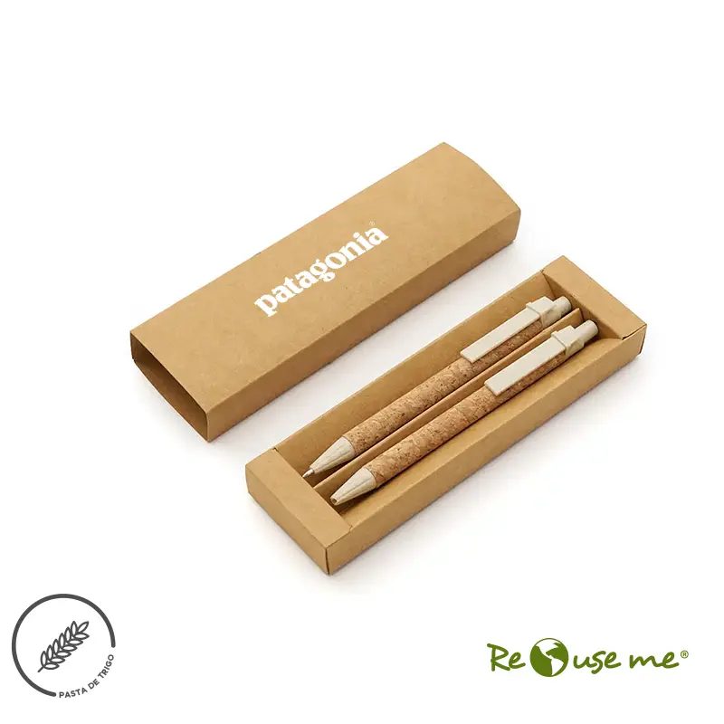 El Set Ancor incluye bolígrafo y lápiz con cuerpo de corcho y piezas de Wheat Straw, pasta de tallo de trigo, un material sustentable que reduce el consumo de plásticos vírgenes. Viene presentado en una práctica caja de cartón.