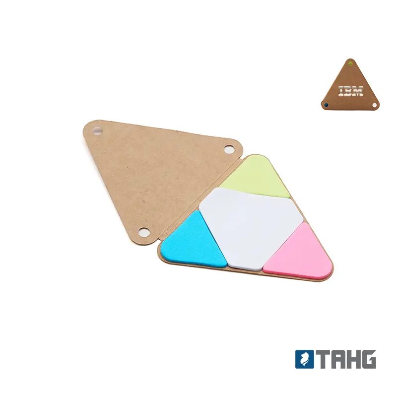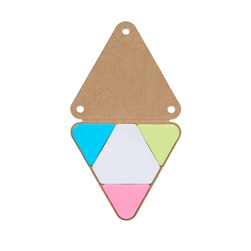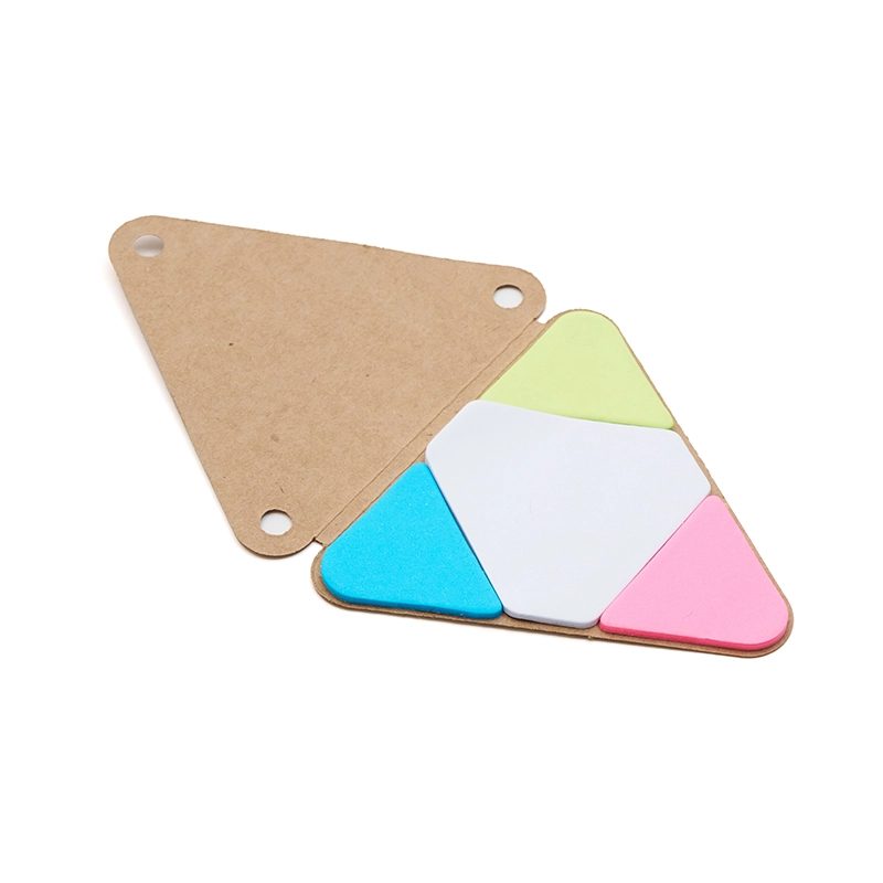 Set de notas adhesivas en forma triangular. Pack de notas auto adhesivas de papel sobre una base de papel kraft. Cuenta con 4 colores: Blanco, rosa, verde y azul. Ideal para anotar recordatorios o marcar paginas. Tahg
