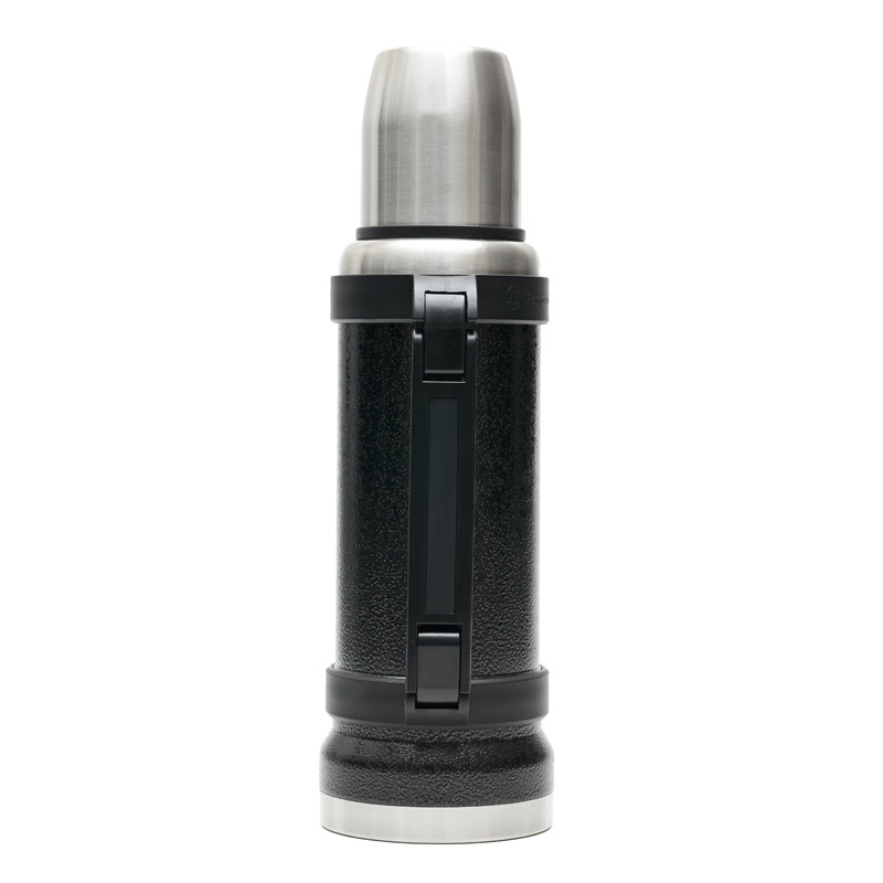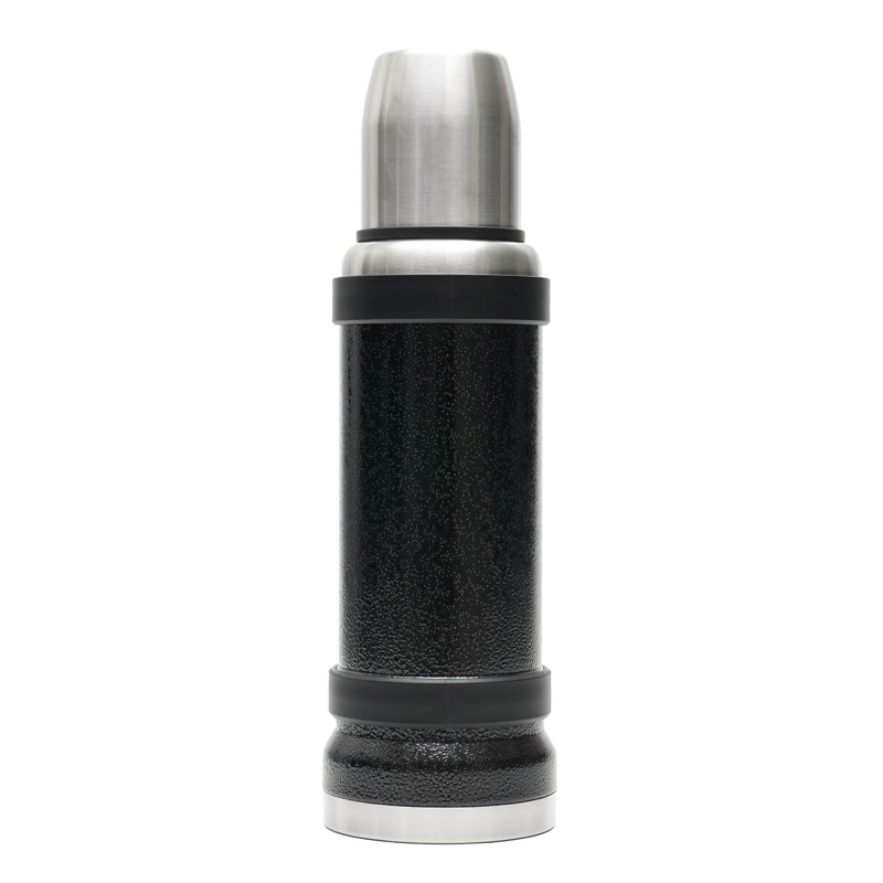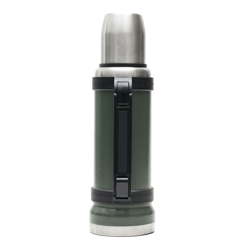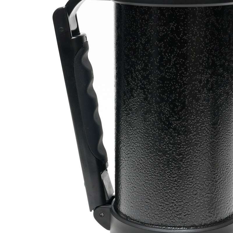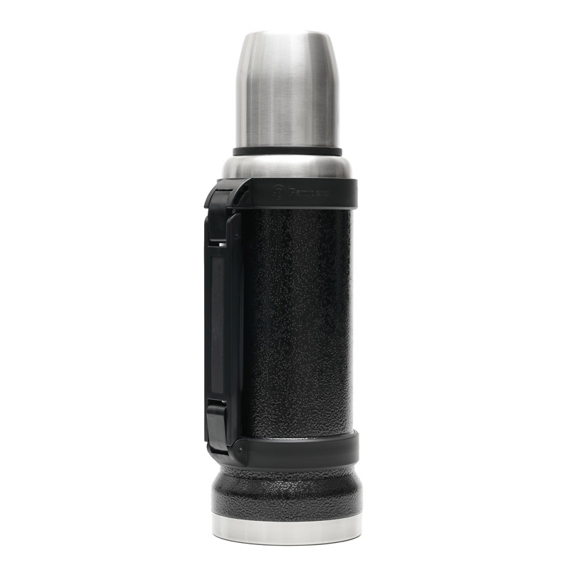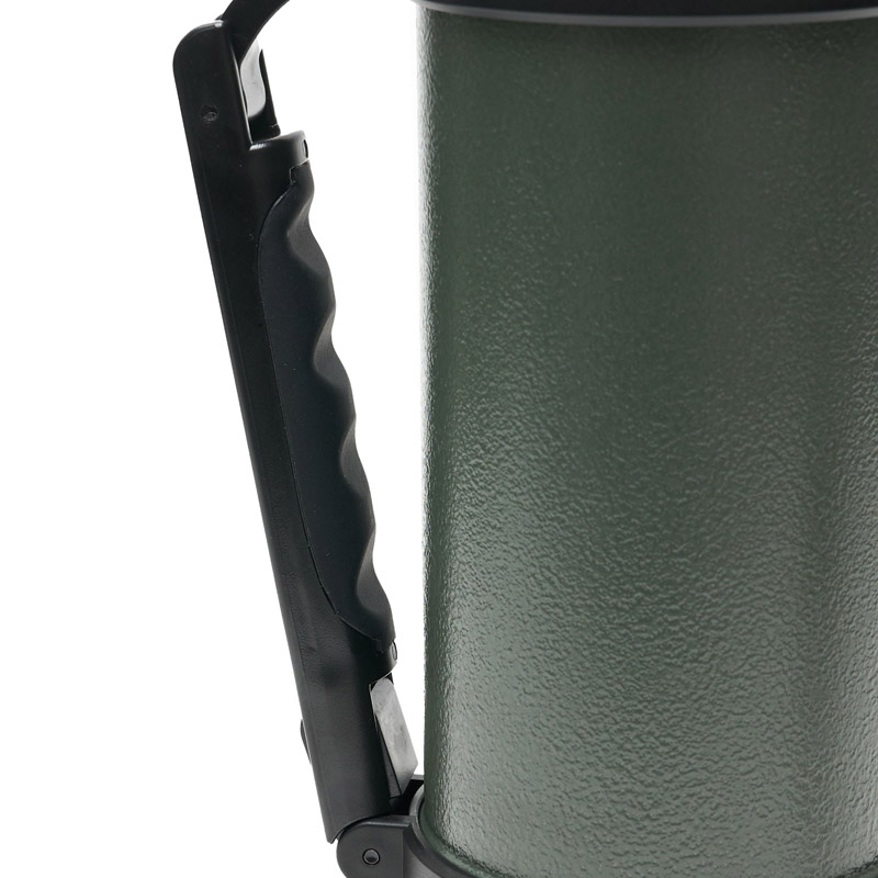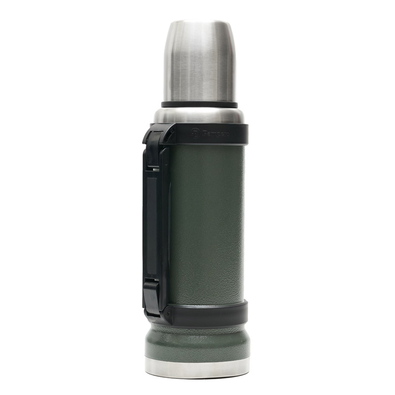 Termo de acero inoxidable 304, recubierto con esmalte especial que protege de ralladuras y golpes. Puede mantener el contenido a la misma temperatura durante 18hs, gracias a su doble pared aislante especial de acero. Cuenta con un tapón cebador Hermético a rosca con la función anti derrame y tapa con superficie plana estable para usar como taza o vaso y manija plegable para facilitar el transporte. Presentado en caja de cartón. Producto aprobado por el I.N.A.L. para el contacto con alimentos. Medidas del termo: 34 cm x 10,5 cm. Medidas de la caja: 35 x 11 x 11 cm. Capacidad: 1,1 Lts. Pampero.