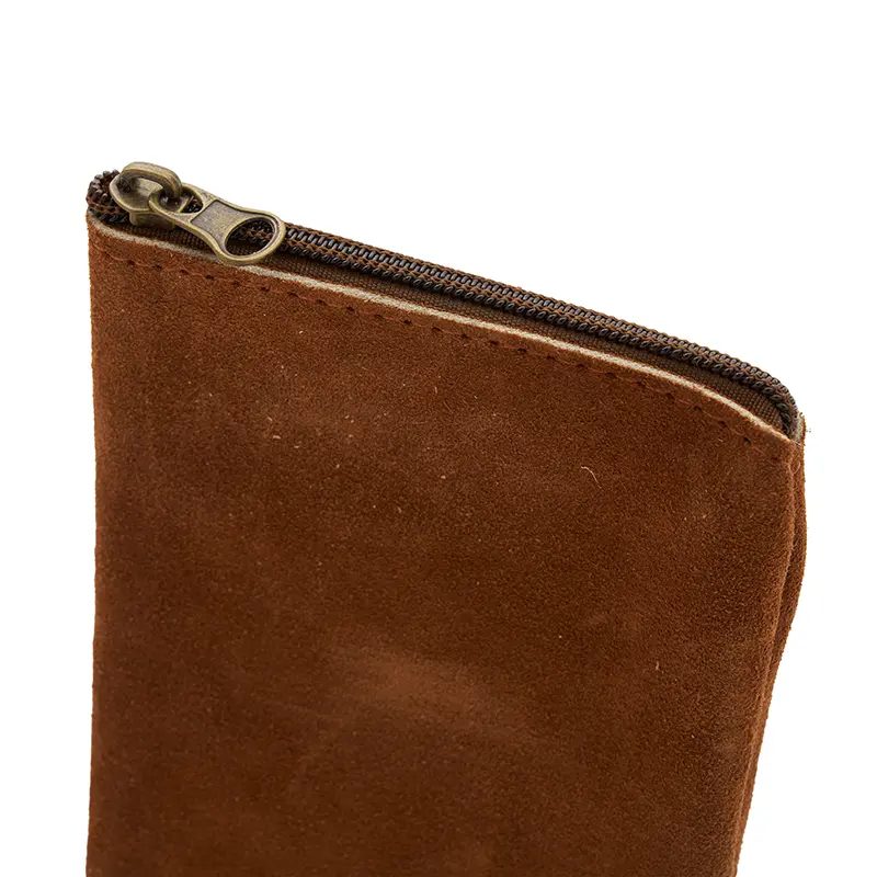 Yerbera confeccionada en cuero gamuzado vacuno seleccionado. Su diseño artesanal combina resistencia, textura natural y un formato práctico para transportar hasta 250gr de yerba. Es ideal para uso diario, regalos corporativos o kits de mate personalizados